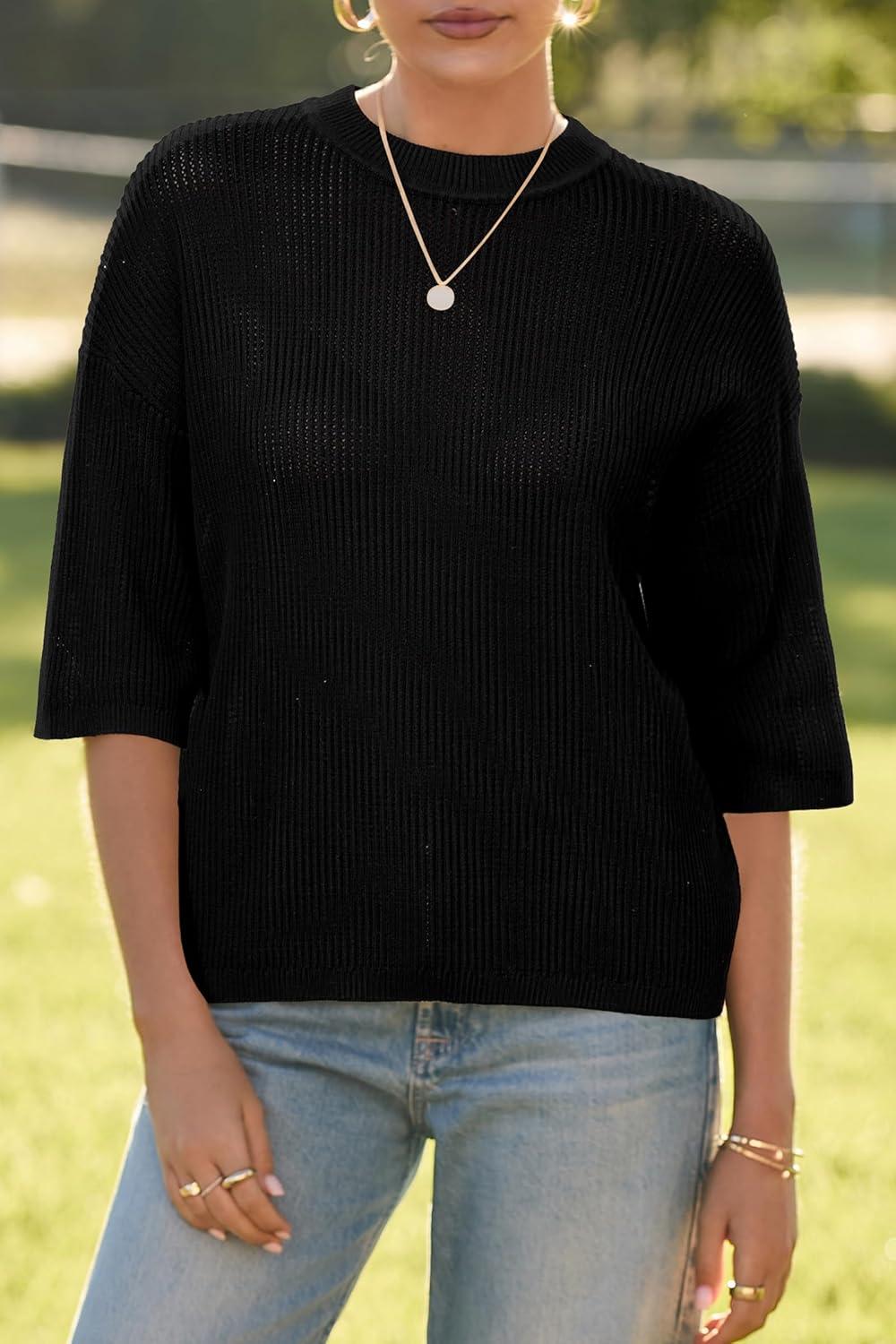 Arach&Cloz Women’s 100% Cotton Fall Casual Relaxed Fit Crochet Tops 2025(Black)