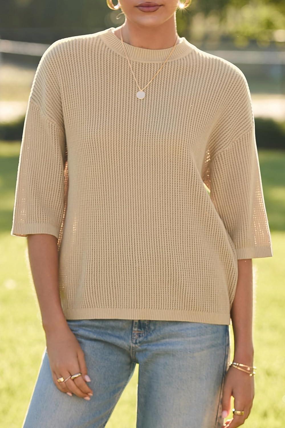 Arach&Cloz Women’s 100% Cotton Fall Casual Relaxed Fit Crochet Tops 2025(Light Khaki)