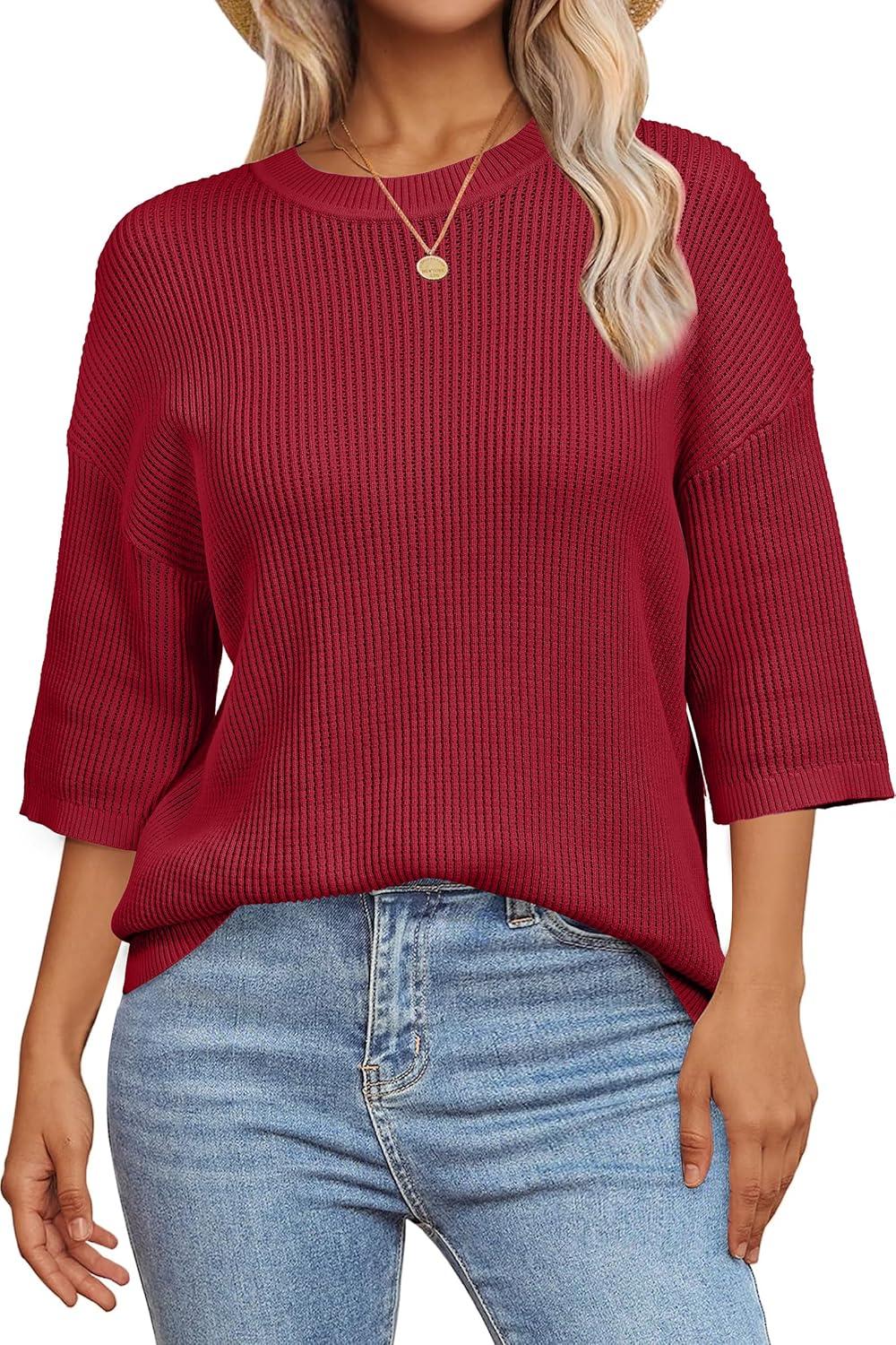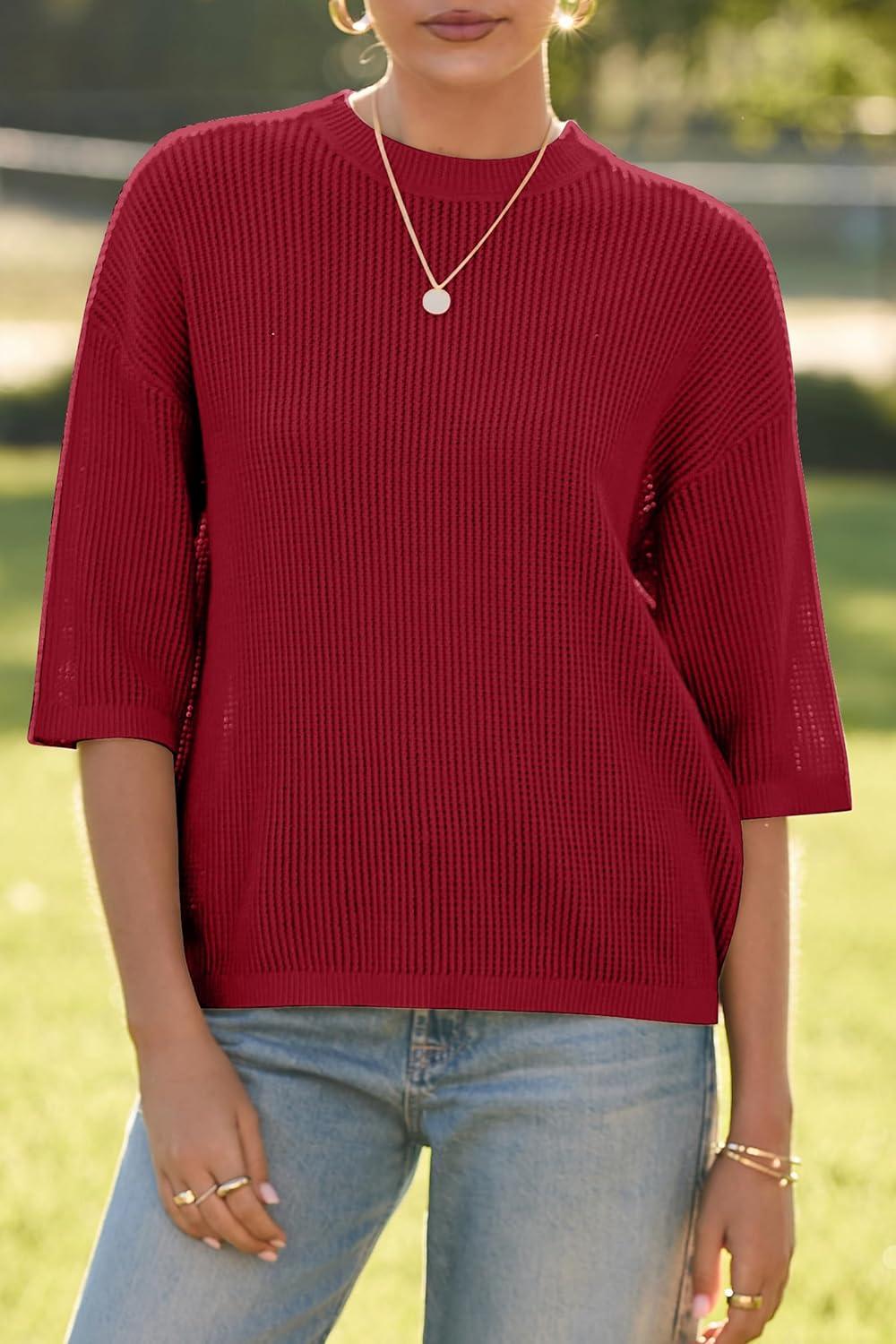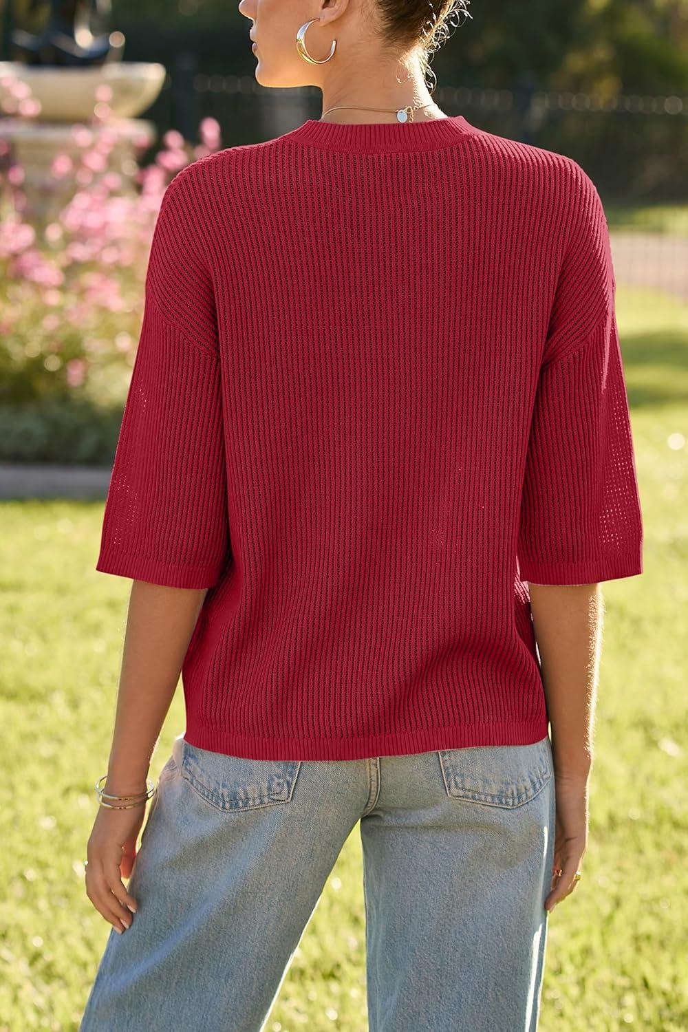 Arach&Cloz Women’s 100% Cotton Fall Casual Relaxed Fit Crochet Tops 2025(Red)