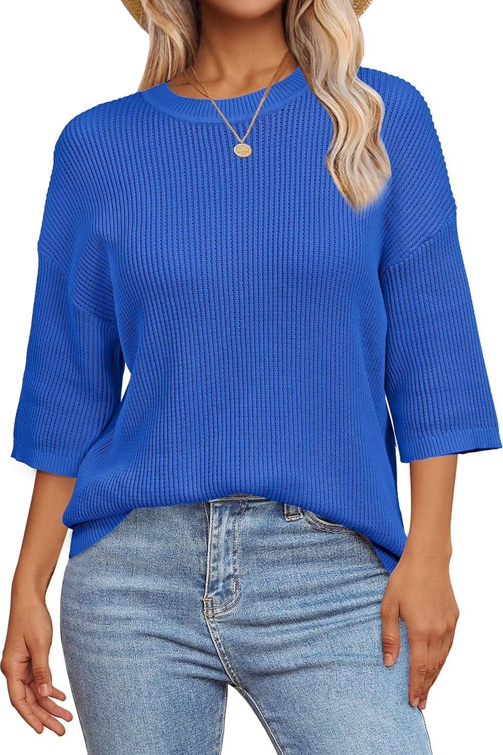Arach&Cloz Women’s 100% Cotton Fall Casual Relaxed Fit Crochet Tops 2025(Royal Blue)