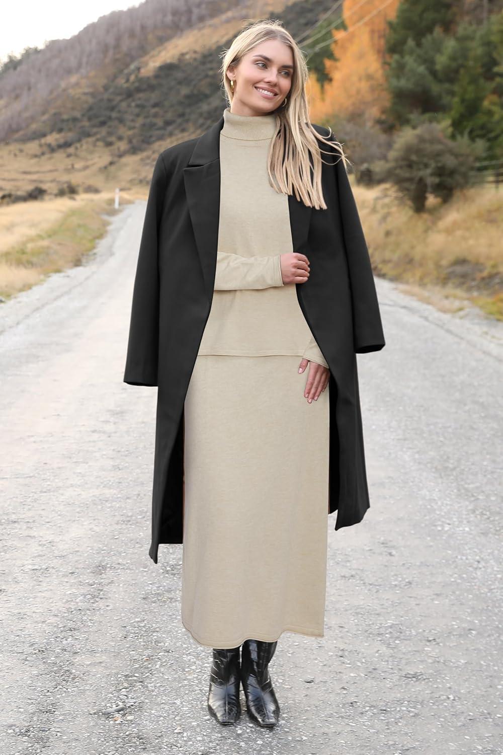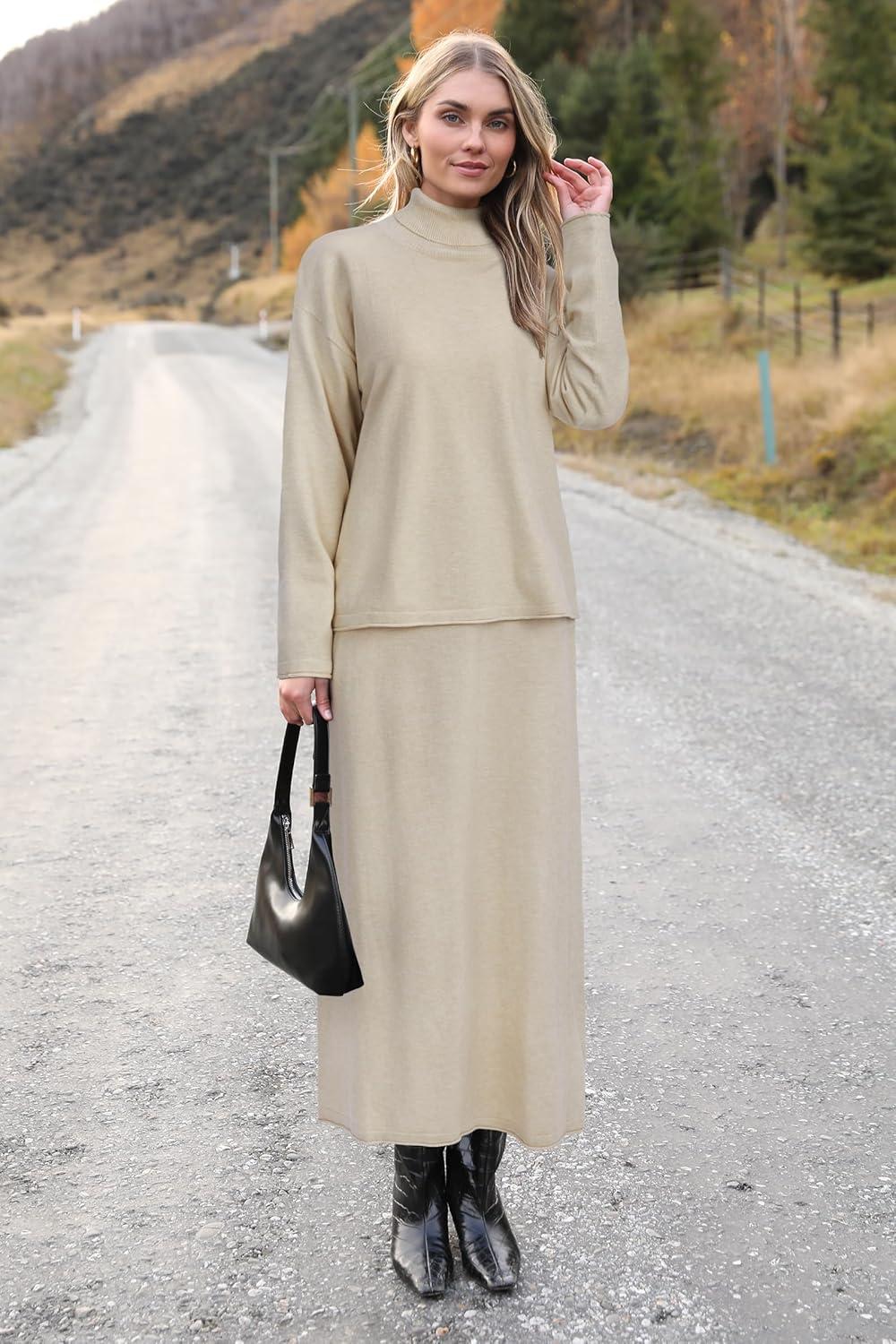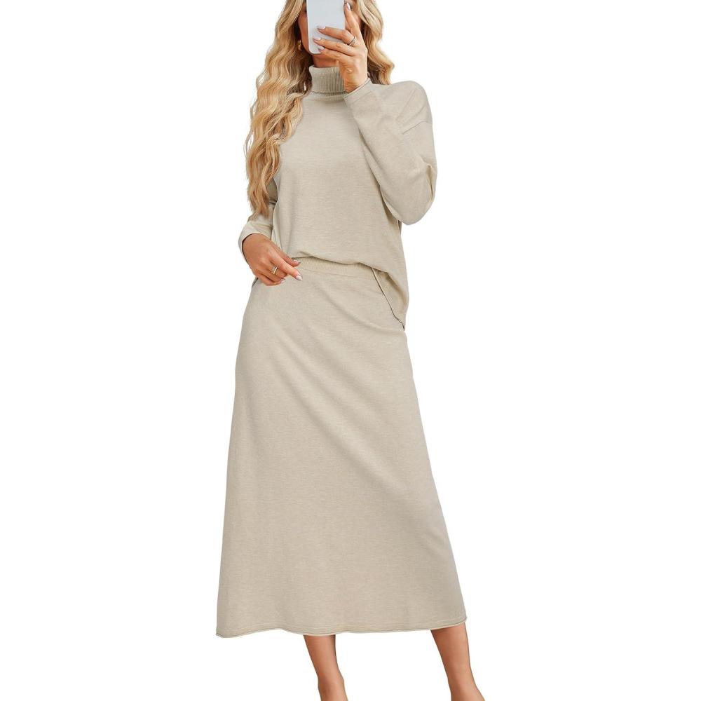 Arach&Cloz Womens 2 Piece Sweaters Sets Turtleneck Long Sleeve Tops Long Maxi Skirt Casual Fall Fashion 2024 Outfits(Apricot)