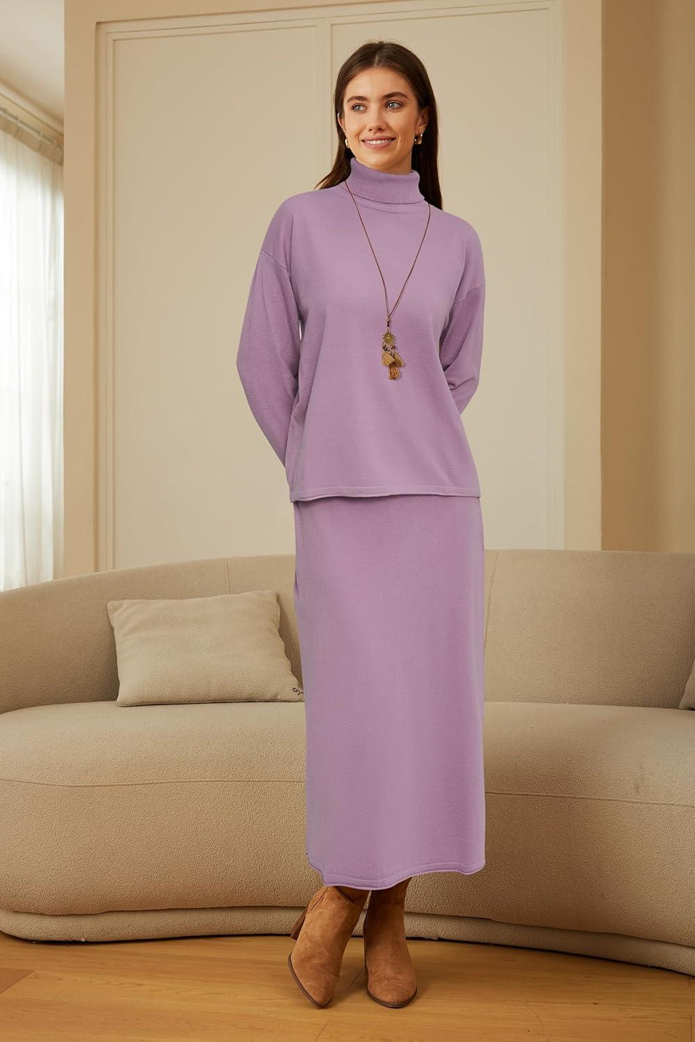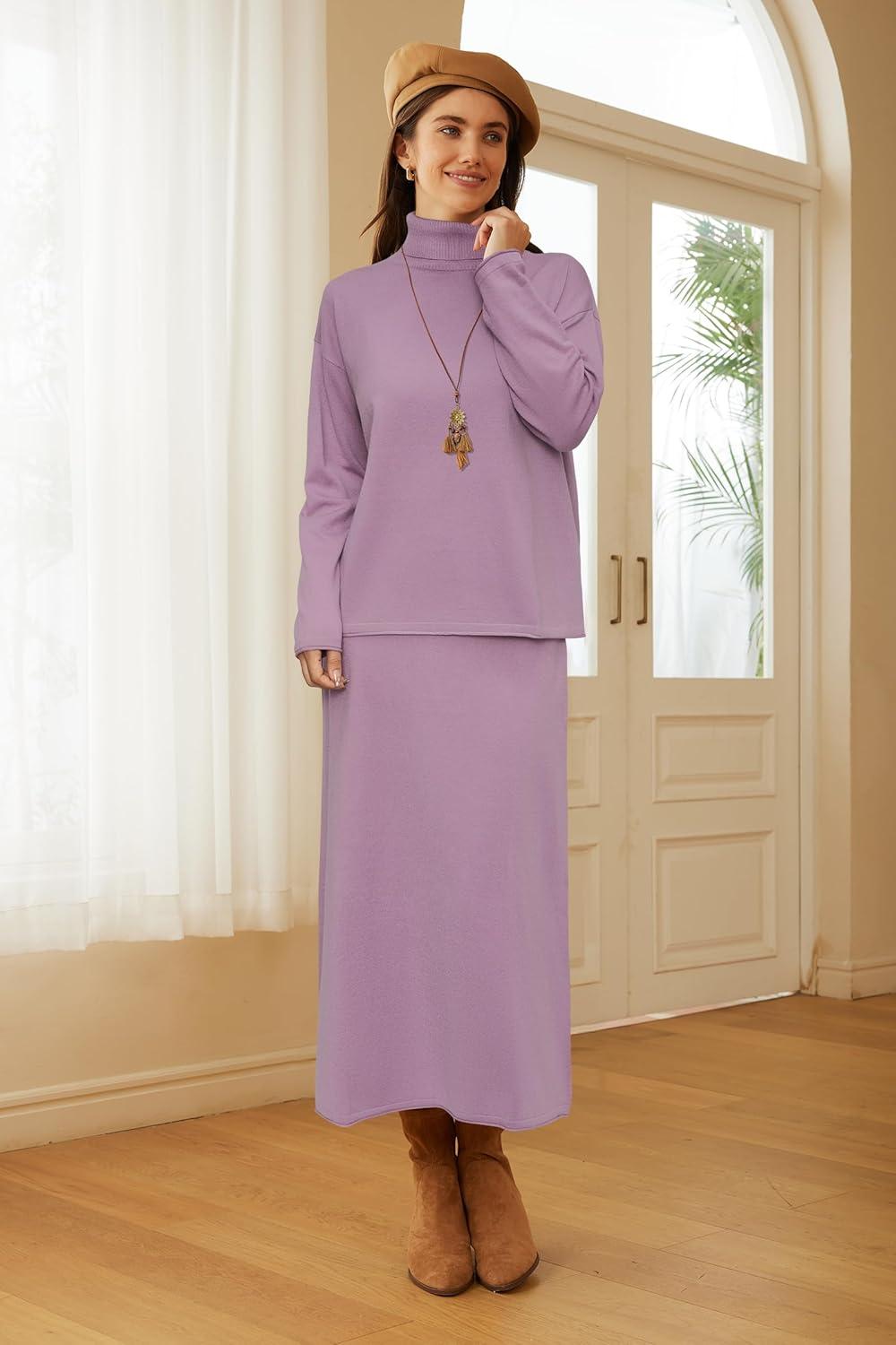 Arach&Cloz Womens 2 Piece Sweaters Sets Turtleneck Long Sleeve Tops Long Maxi Skirt Casual Fall Fashion 2024 Outfits(Purple Lilac)