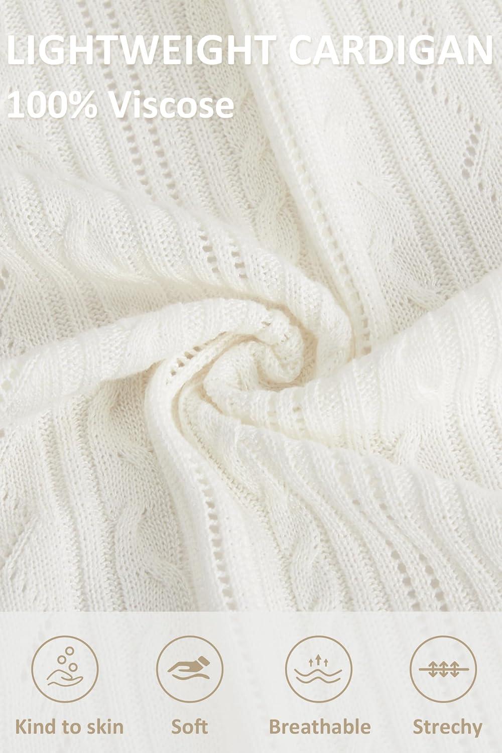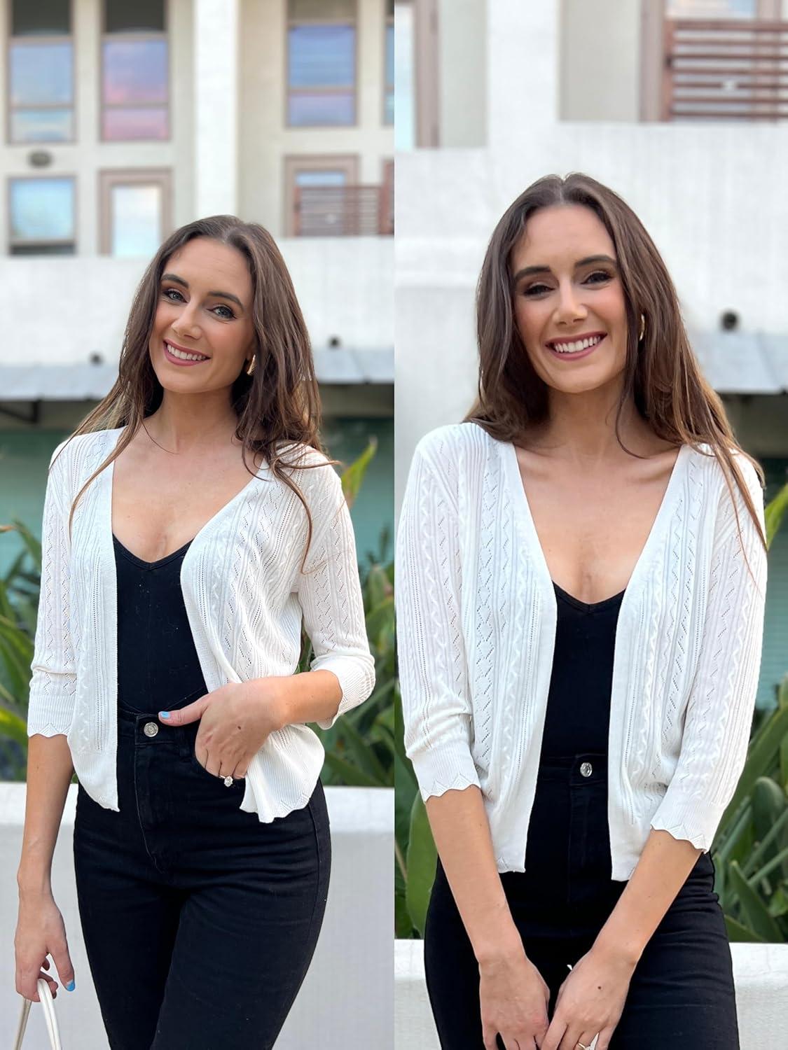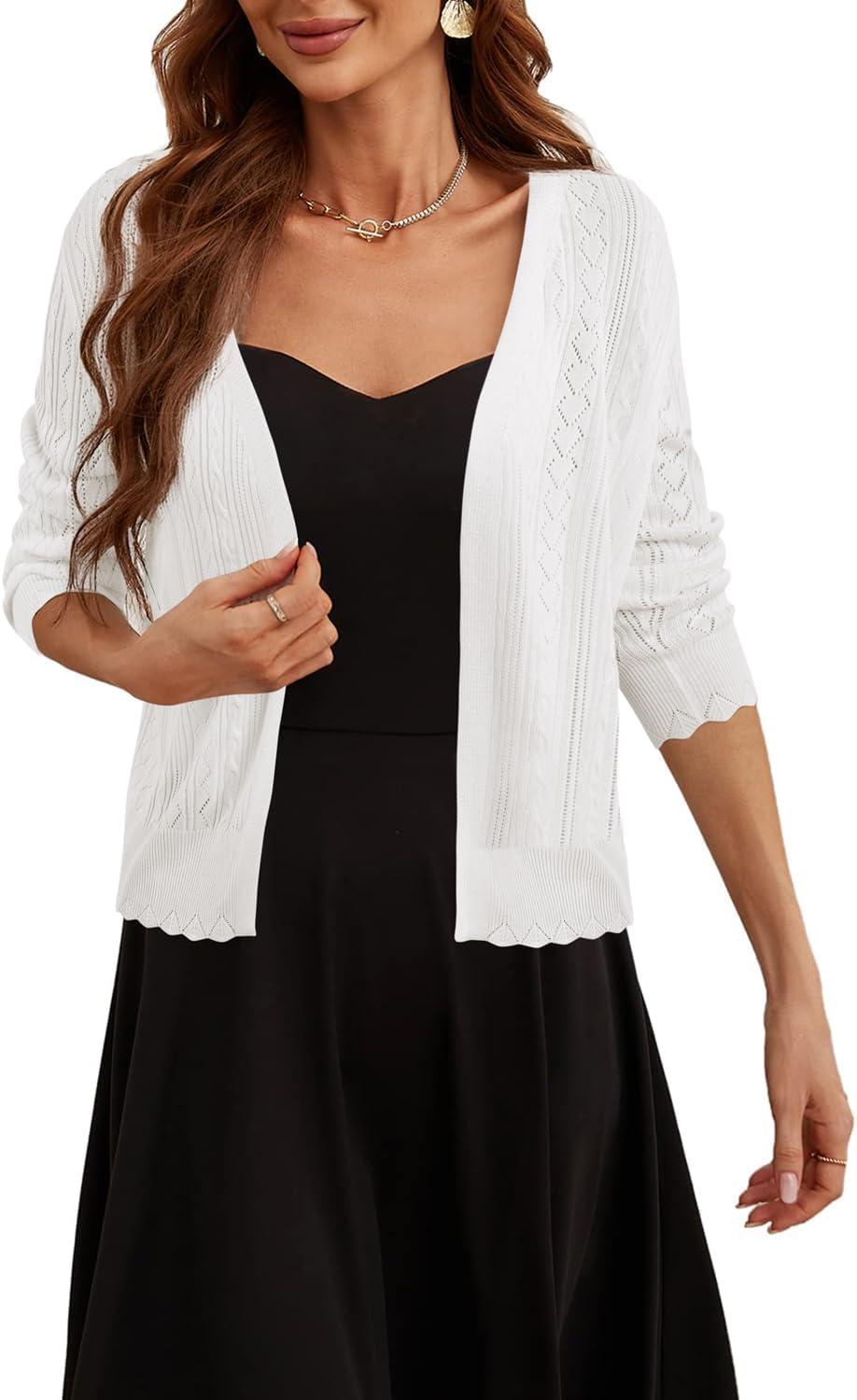 Arach&Cloz Women’s 2024 Lightweight Summer Cardigan 3/4 Sleeve Crochet Patterns Knit Shrug Sweater Tops(Beige White)