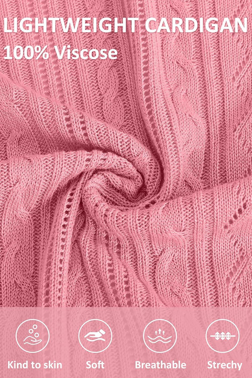 Arach&Cloz Women’s 2024 Lightweight Summer Cardigan 3/4 Sleeve Crochet Patterns Knit Shrug Sweater Tops(Pink)