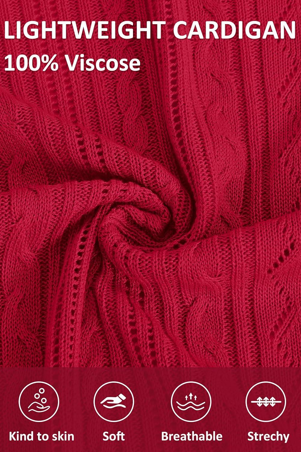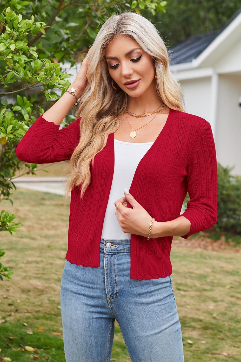 Arach&Cloz Women’s 2024 Lightweight Summer Cardigan 3/4 Sleeve Crochet Patterns Knit Shrug Sweater Tops(Red)