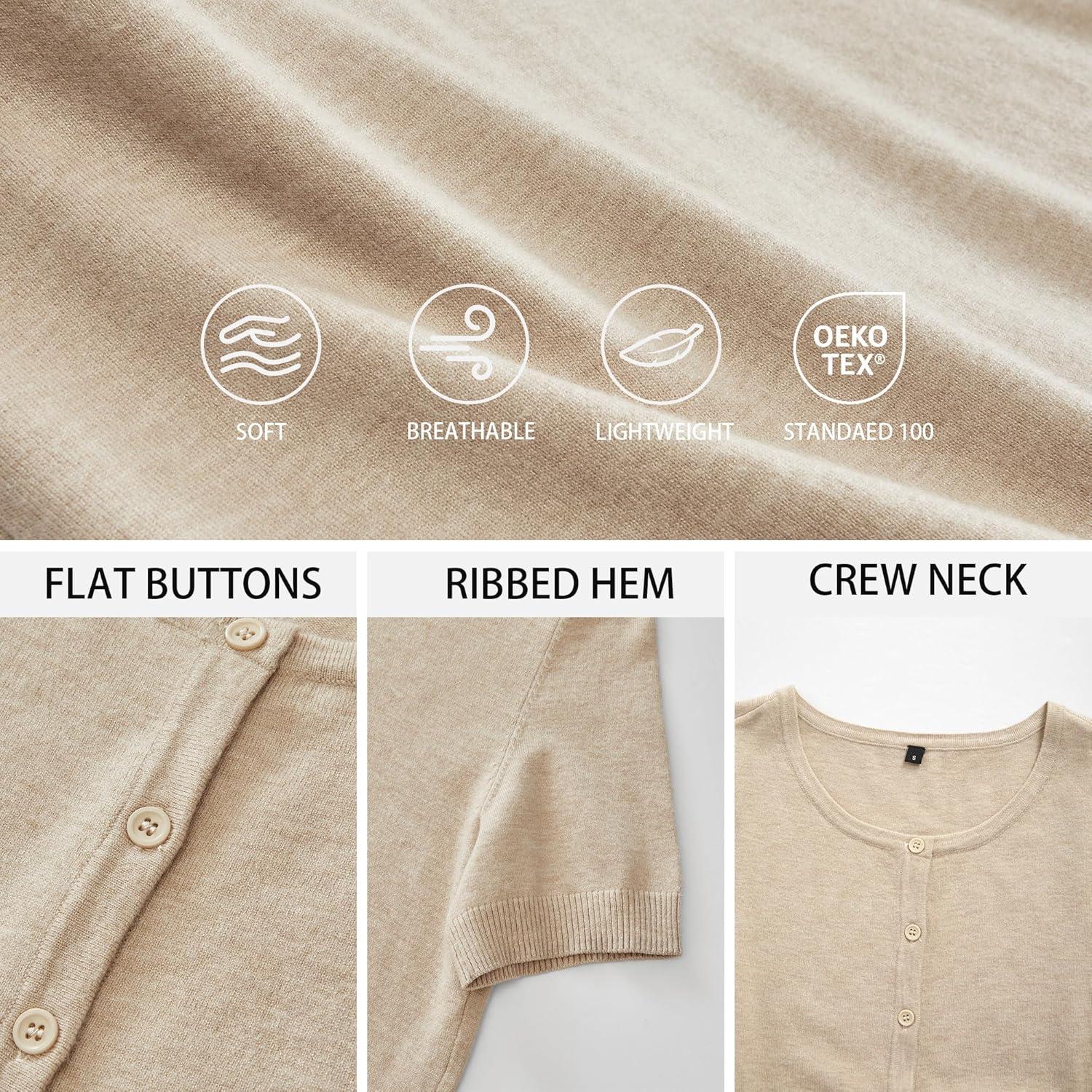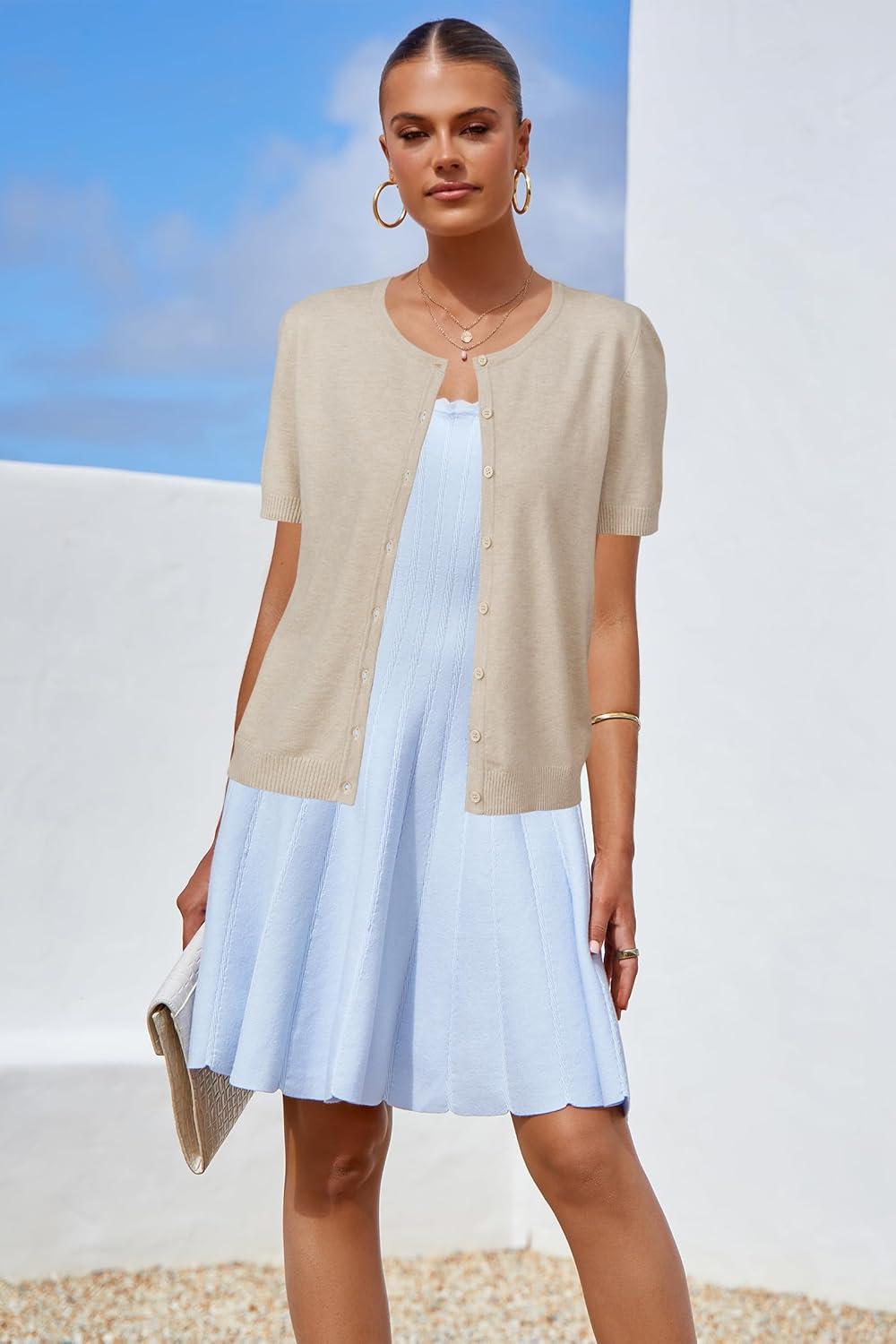 Arach&Cloz Women’s 2025 Summer Lightweight Cropped Cardigan Short Sleeve Crew Neck Bolero Shrug Casual Top(Apricot)
