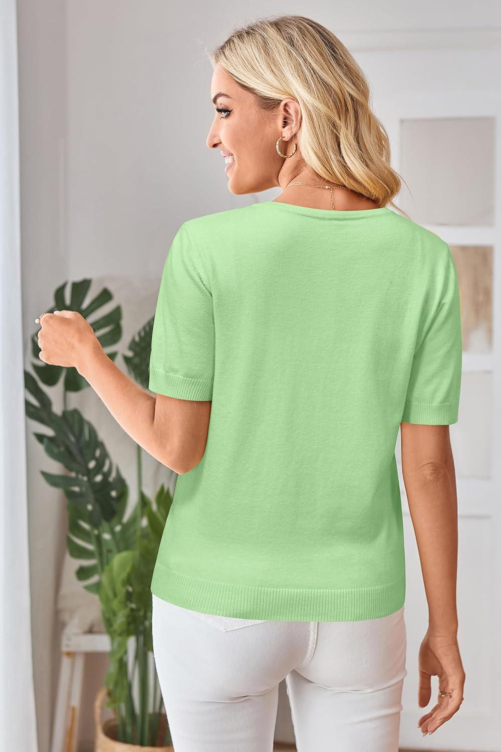 Arach&Cloz Women’s 2025 Summer Lightweight Cropped Cardigan Short Sleeve Crew Neck Bolero Shrug Casual Top(Light Green)