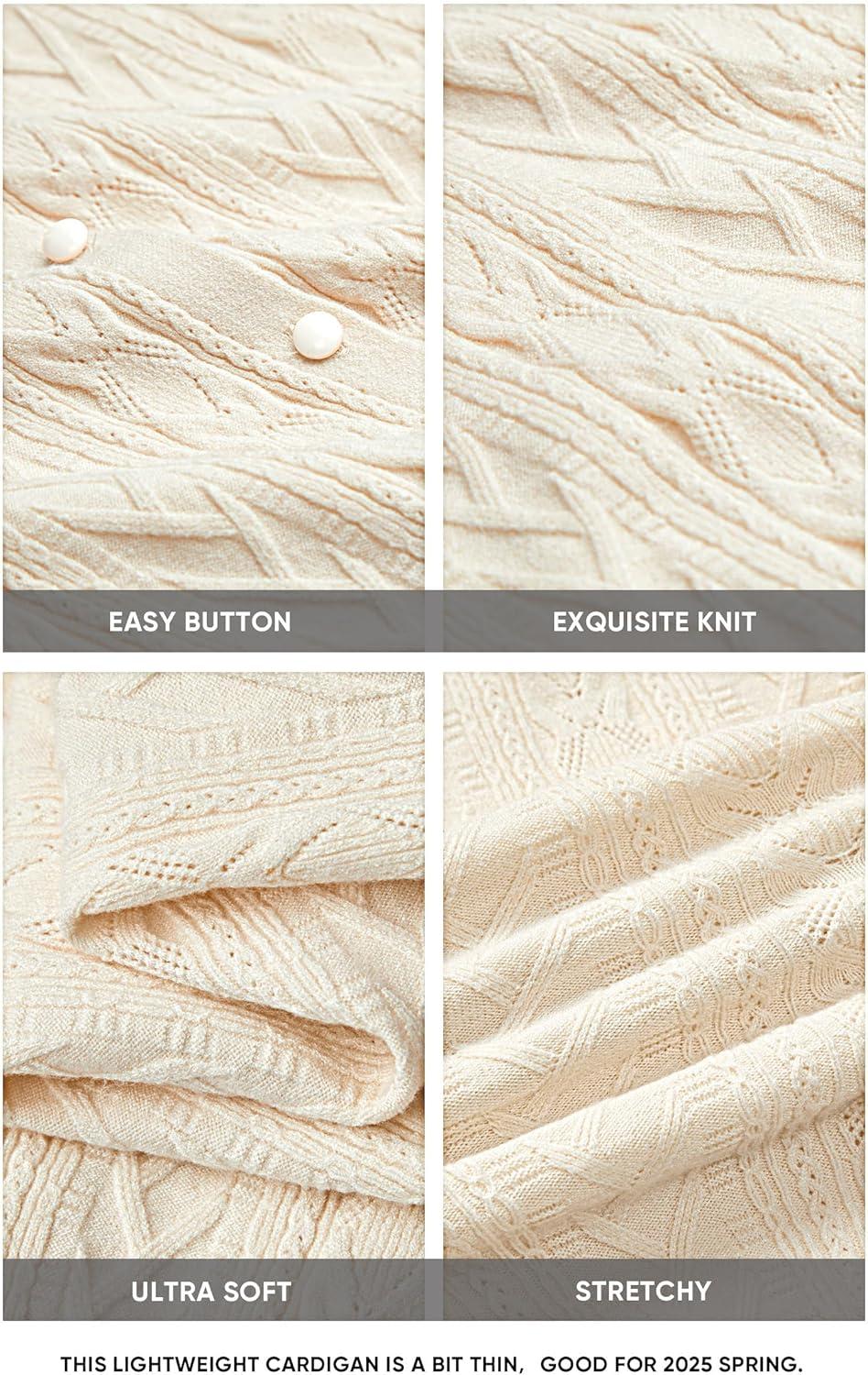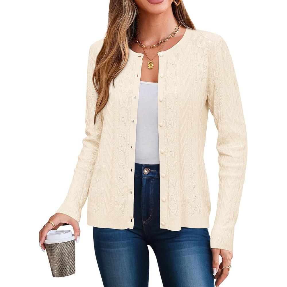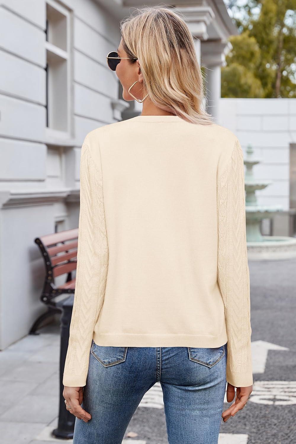 Arach&Cloz Women’s Cable Knit Fall Soft Lightweight Sweater Cardigans 2025(Ivory Apricot)