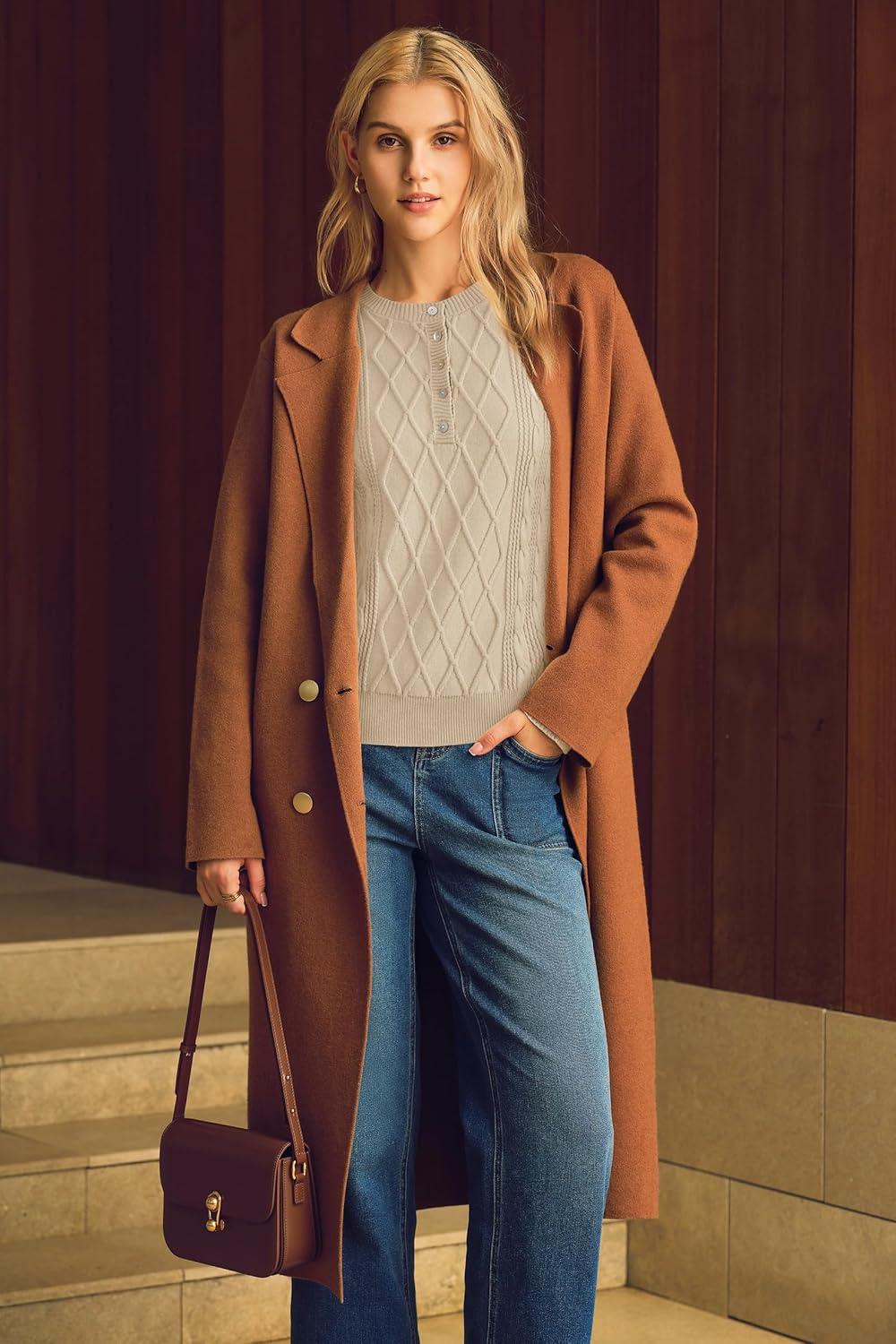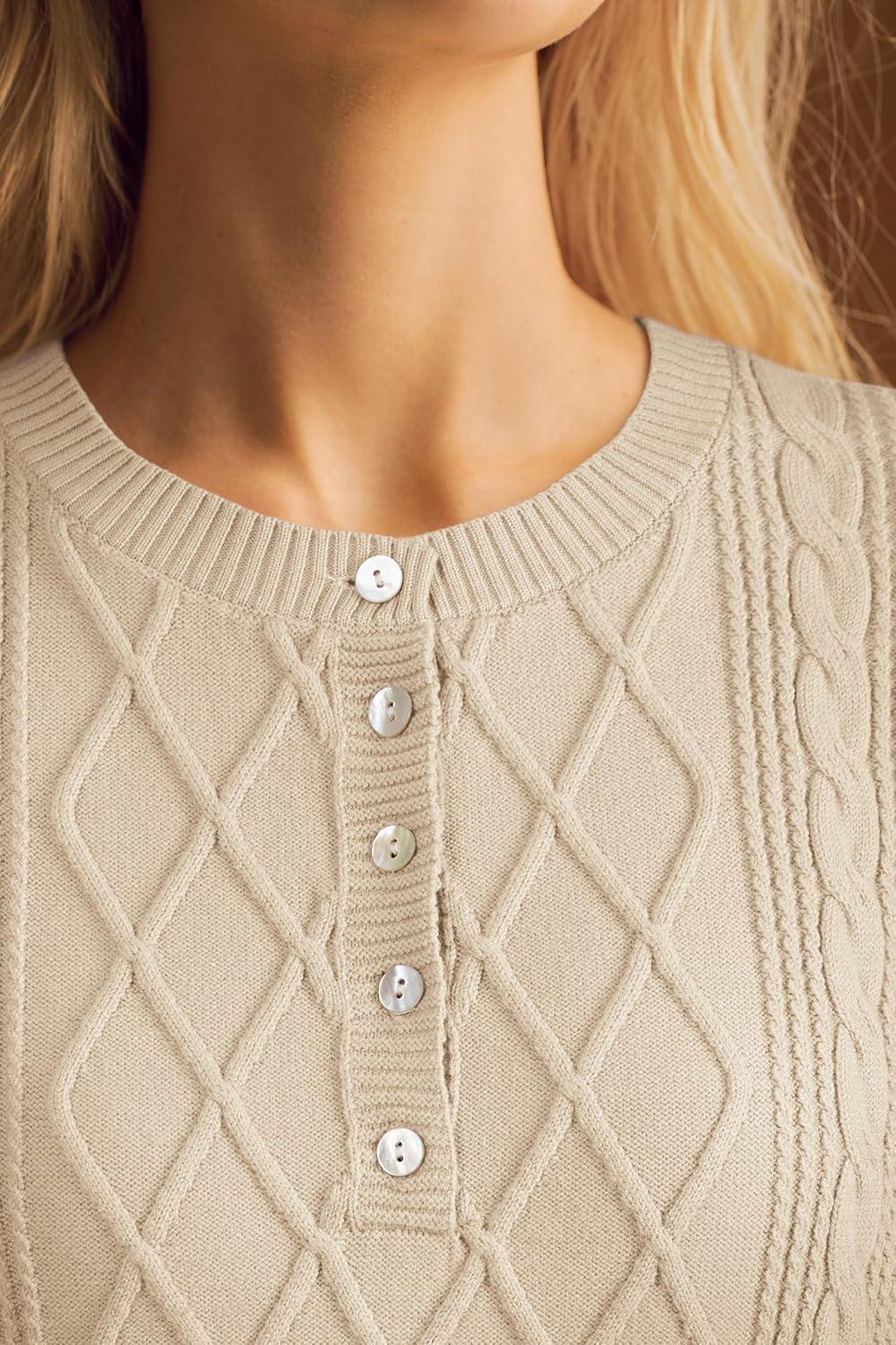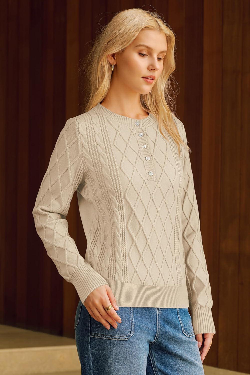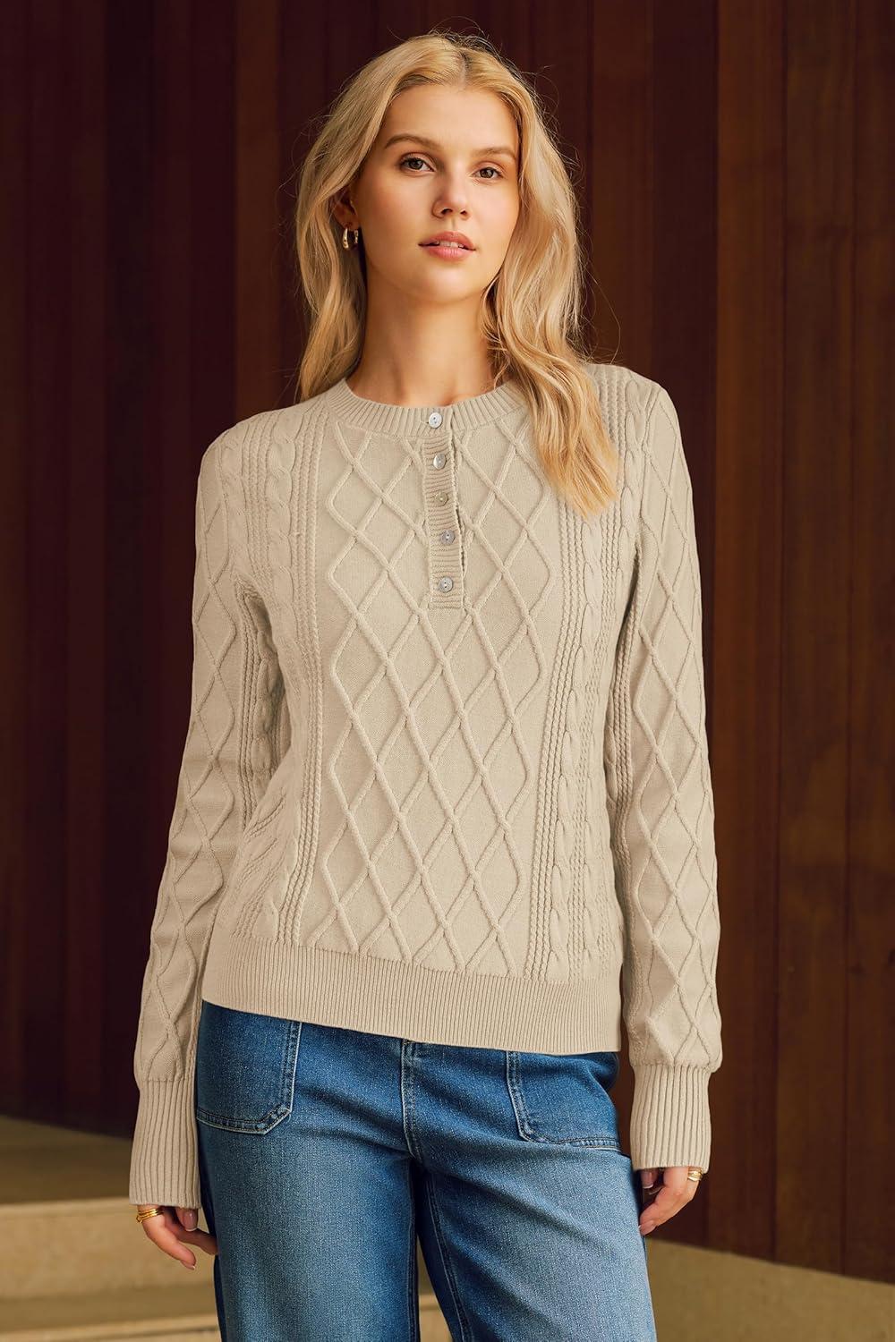 Arach&Cloz Womens Comfy Cotton Blend Cable Knit Casual Sweaters 2025(Apricot)