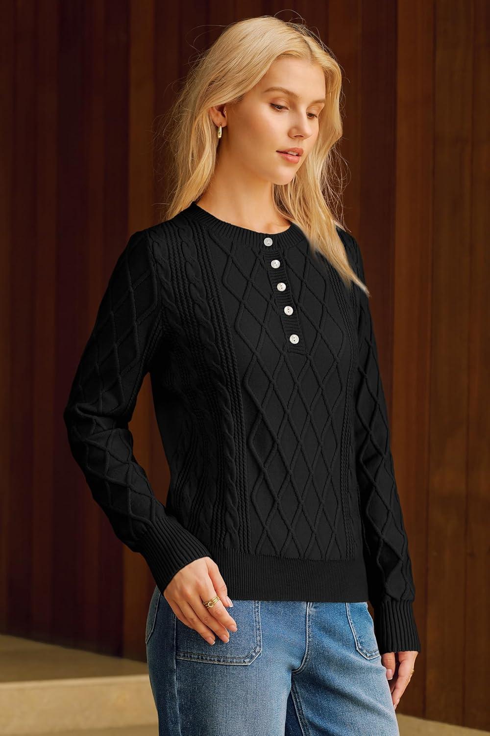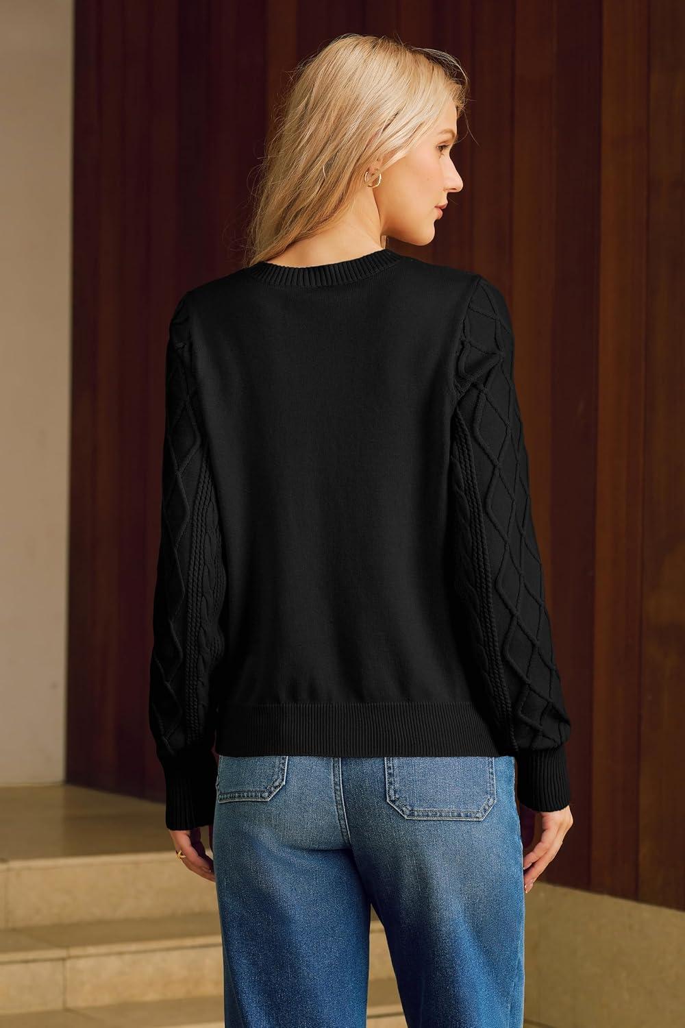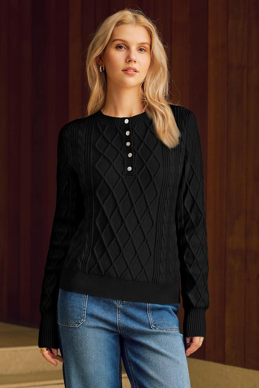 Arach&Cloz Womens Comfy Cotton Blend Cable Knit Casual Sweaters 2025(Black)