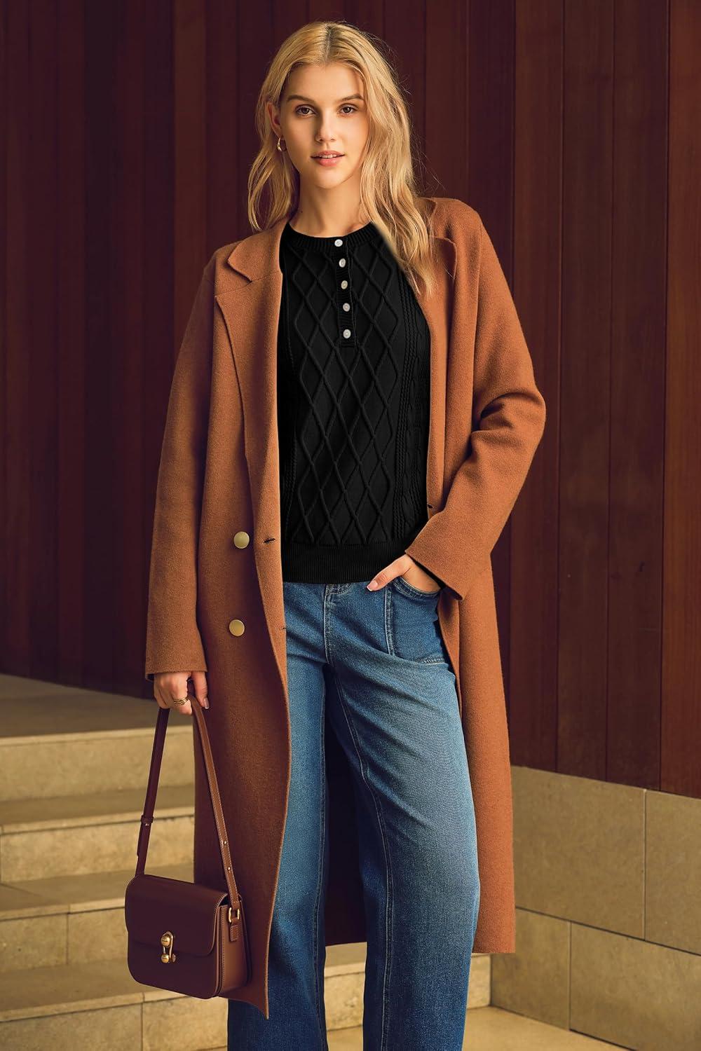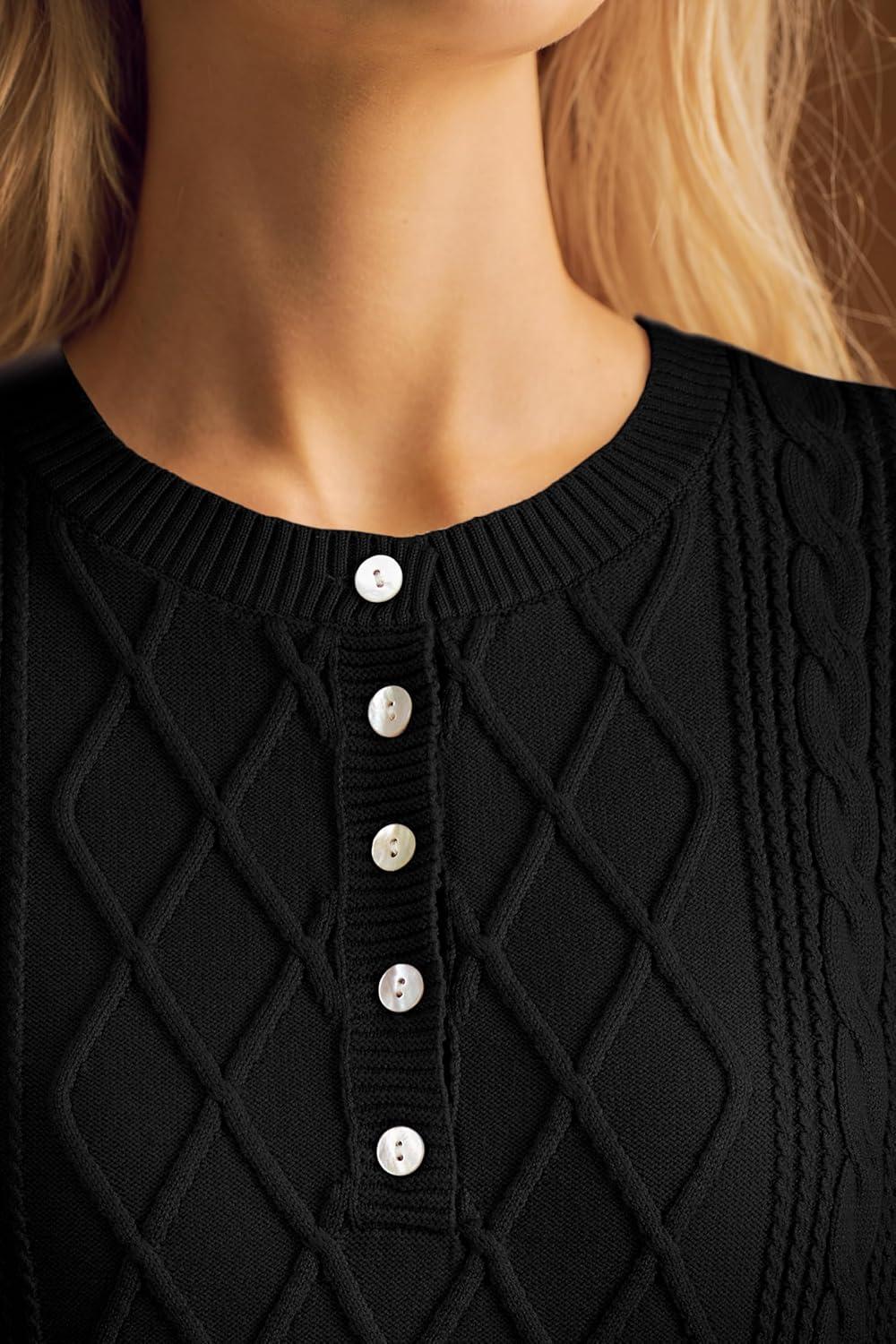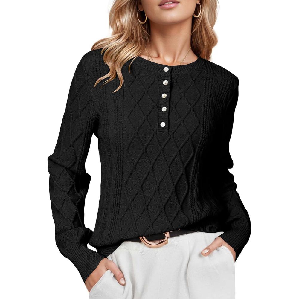 Arach&Cloz Womens Comfy Cotton Blend Cable Knit Casual Sweaters 2025(Black)