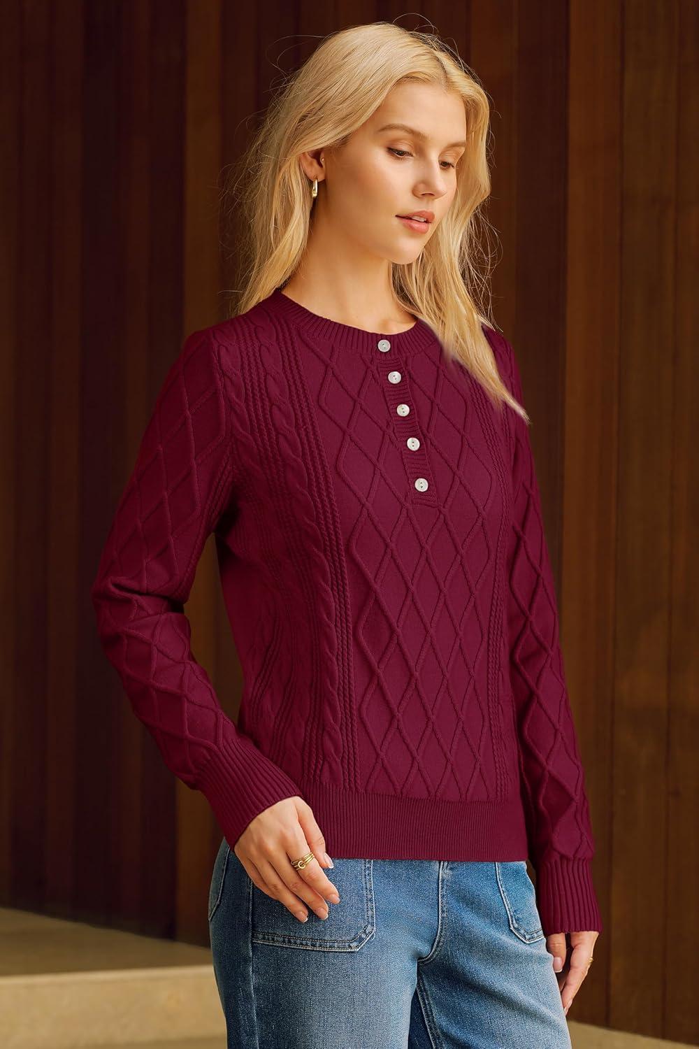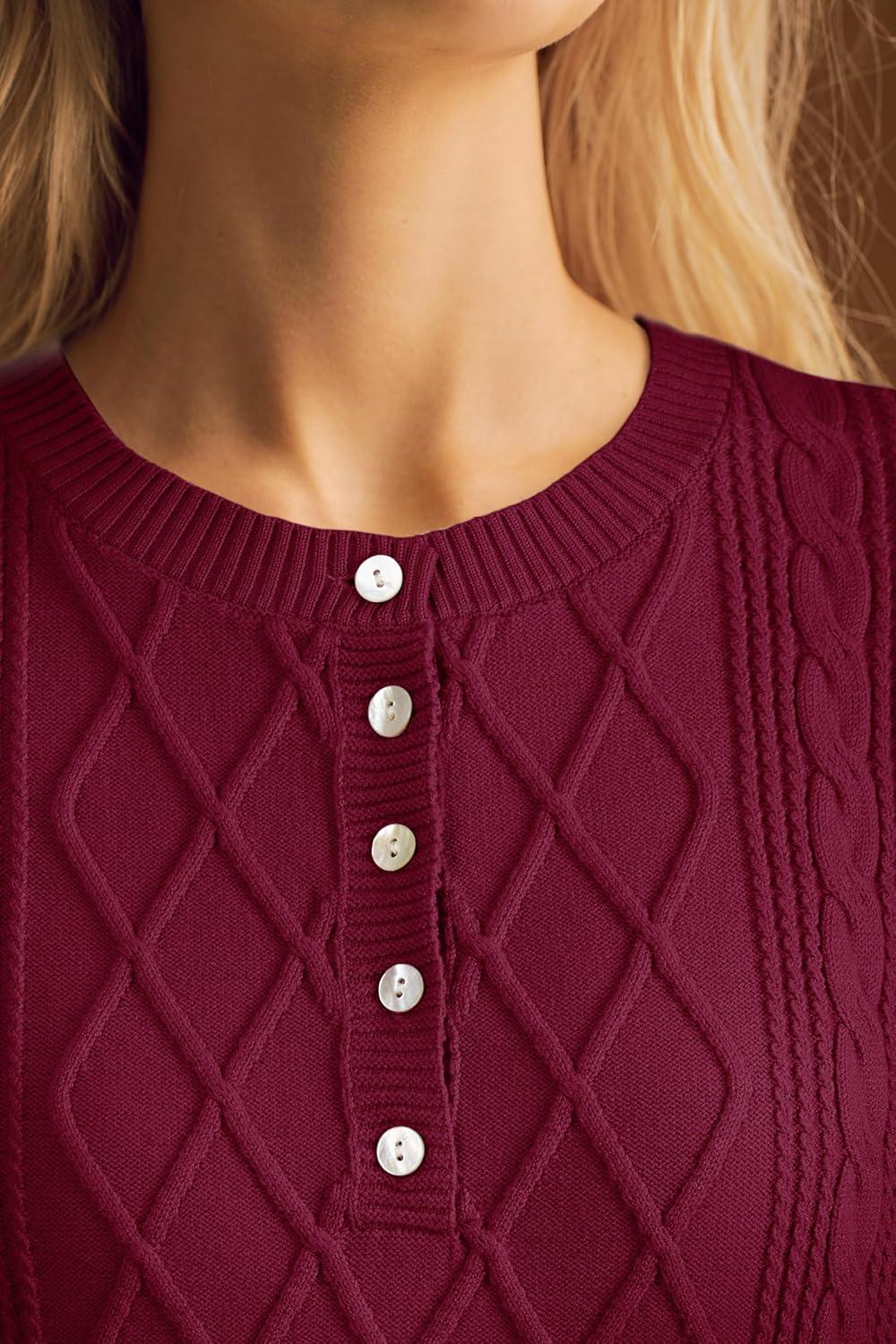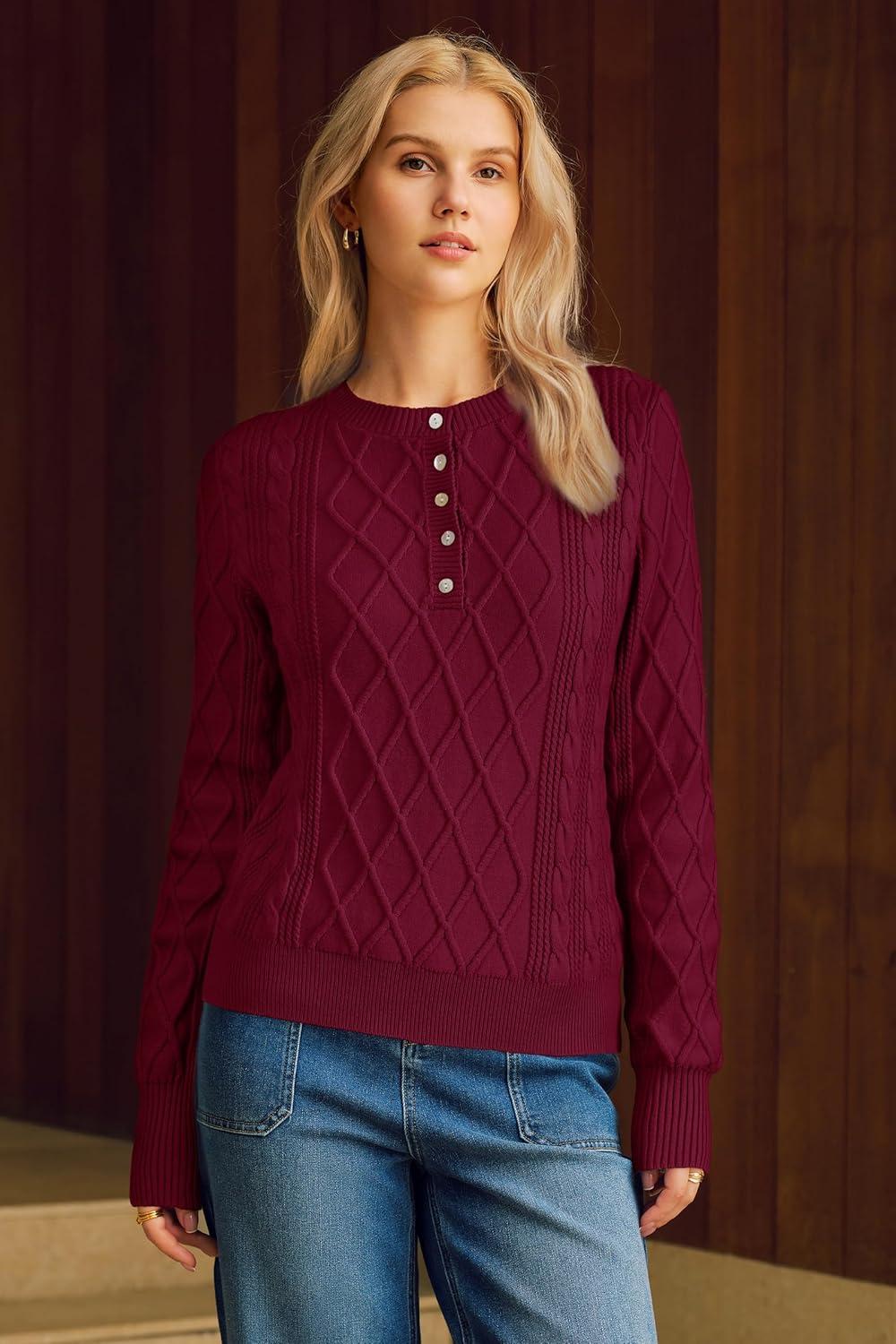 Arach&Cloz Womens Comfy Cotton Blend Cable Knit Casual Sweaters 2025(Dark Red)