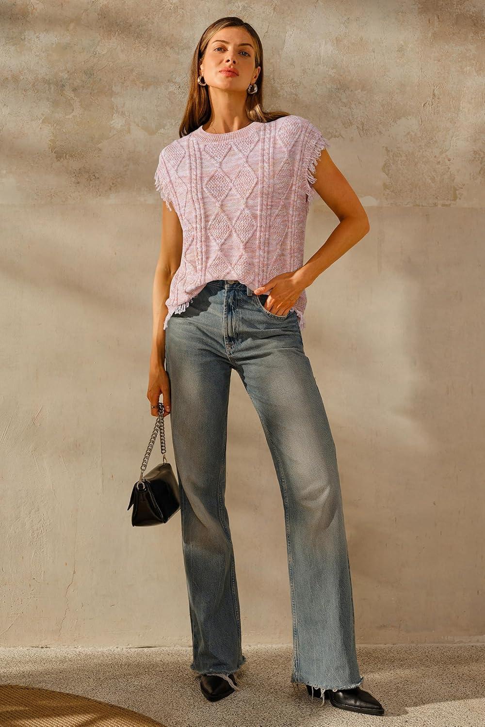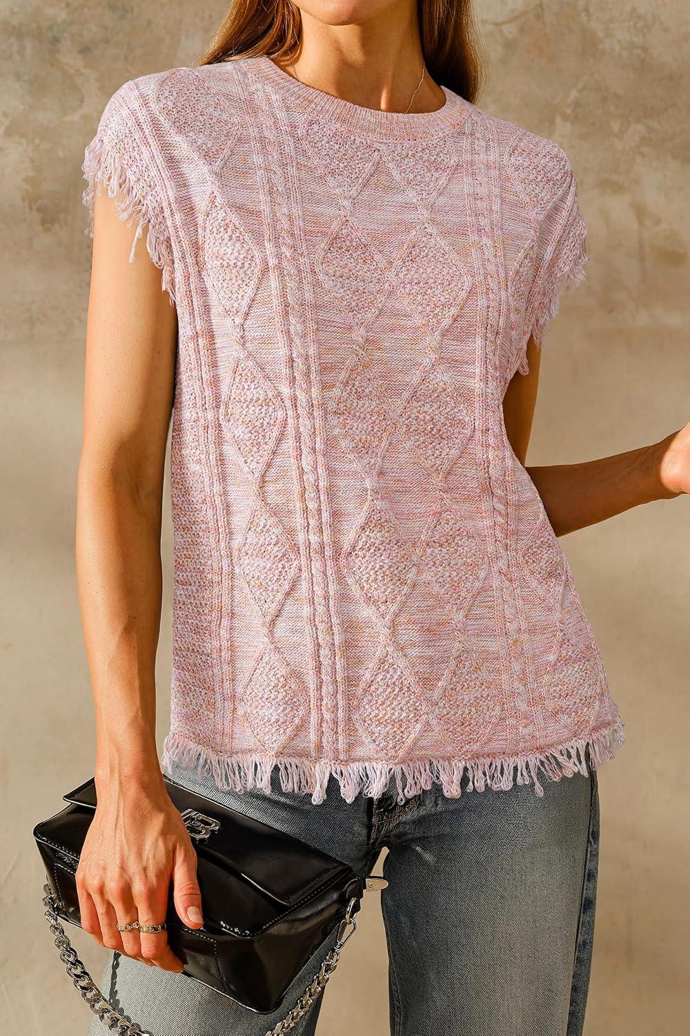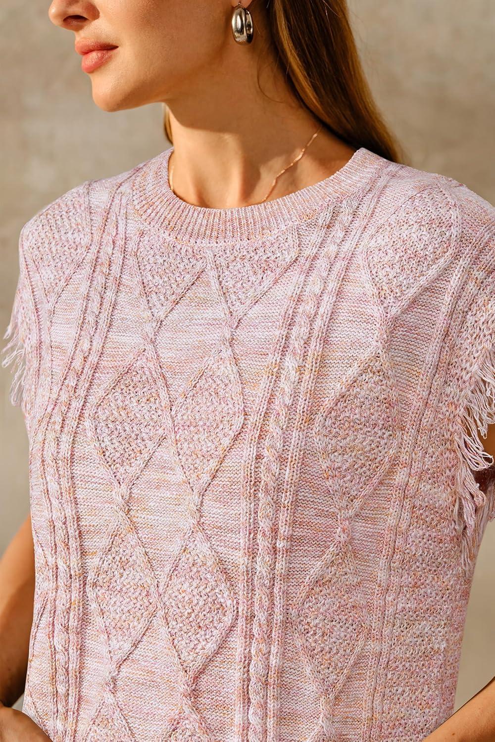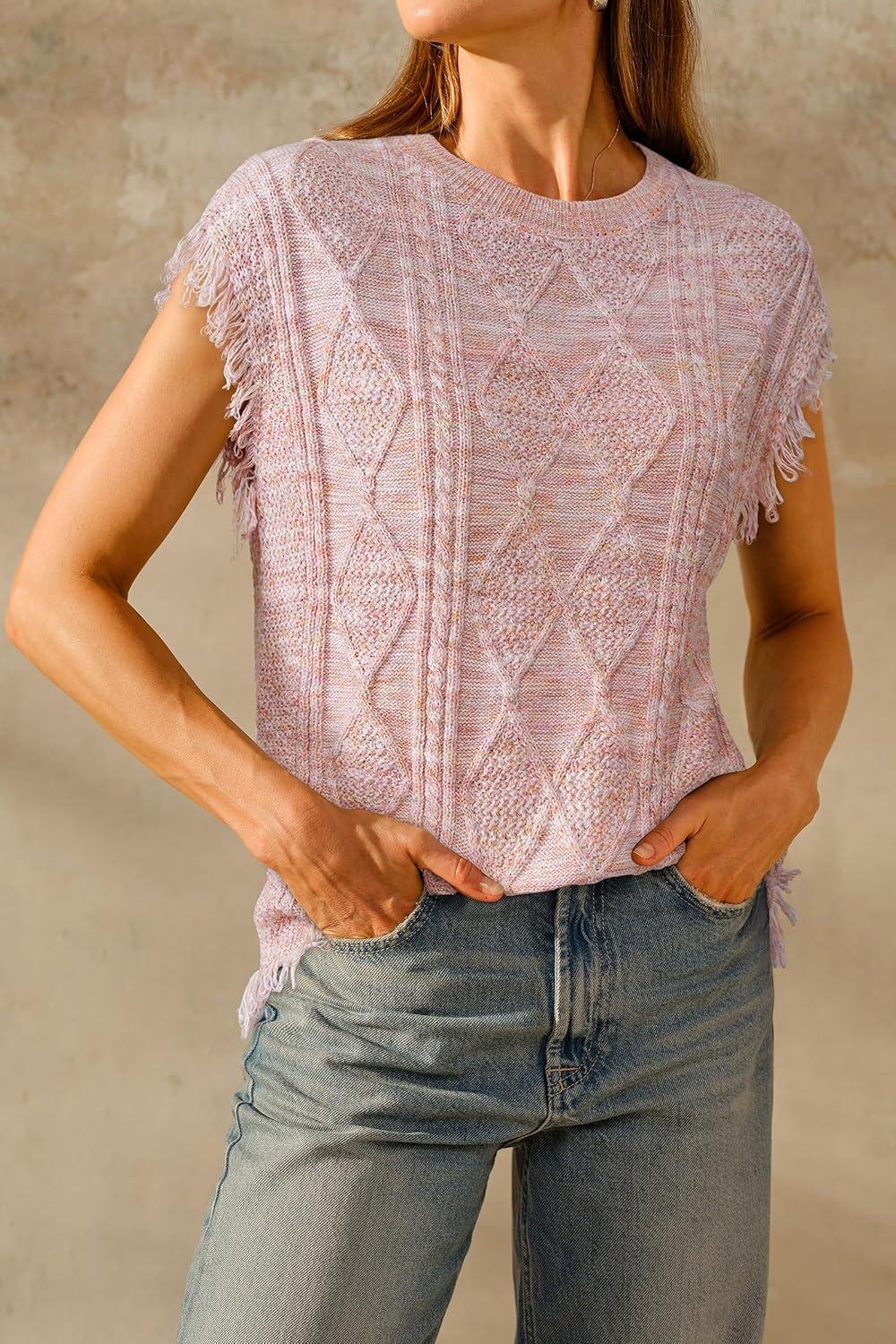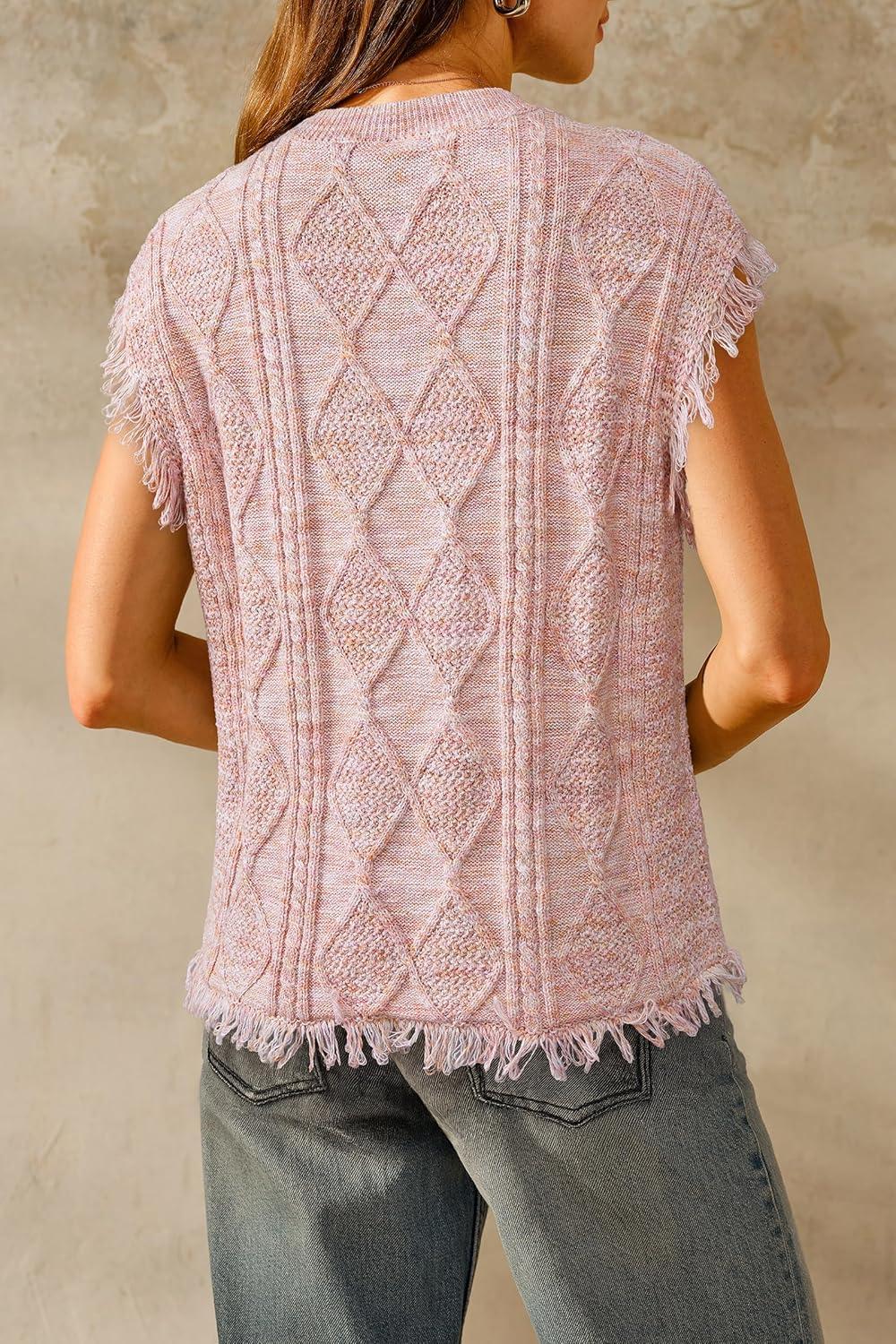 Arach&Cloz Women’s Cozy Cotton Fringe Cable Knit Western Outfits Fall Sweater Vests 2025(Pink Orange Heather)