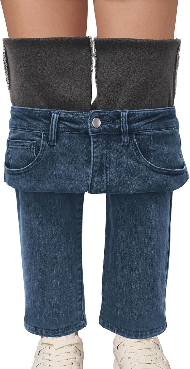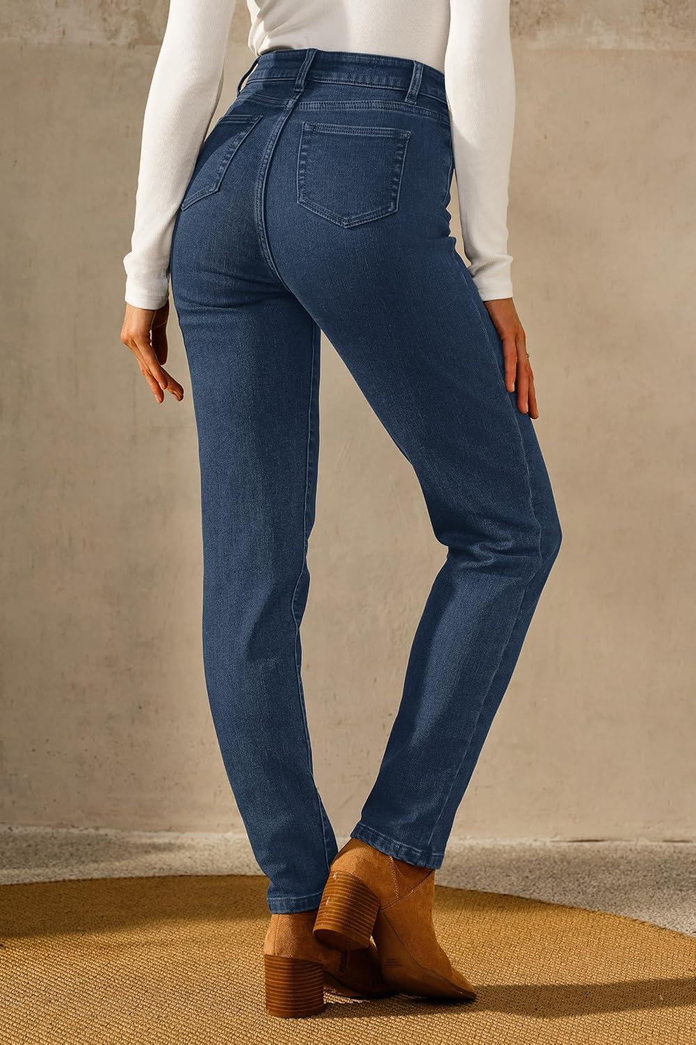 Arach&Cloz Women’s Fleece Lined Jeans with Pockets Fall High Waisted Classic Stretchy Winter Pants 2025 Dark Blue M