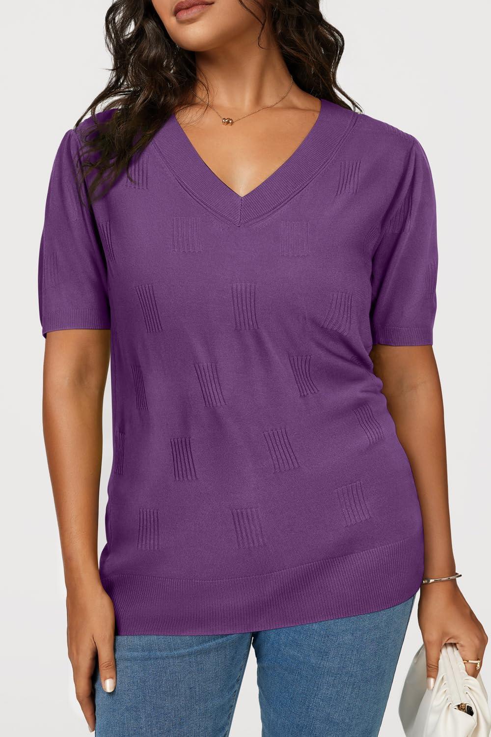 Arach&Cloz Women’s Lightweight Fall Sweater Tops Casual Short Sleeve Blouses Shirts(Az-purple)