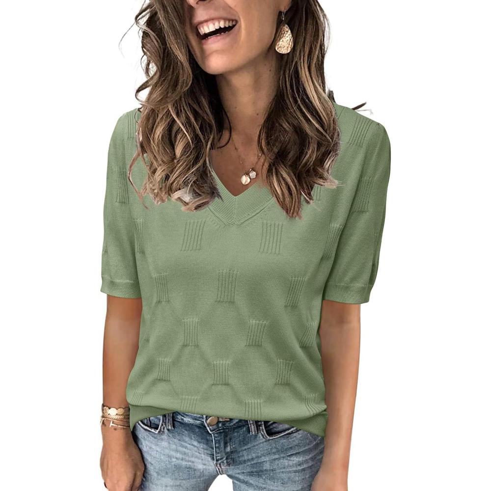Arach&Cloz Women’s Lightweight Fall Sweater Tops Casual Short Sleeve Blouses Shirts(B-sage Green)