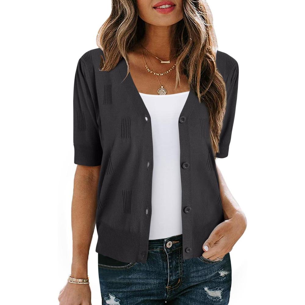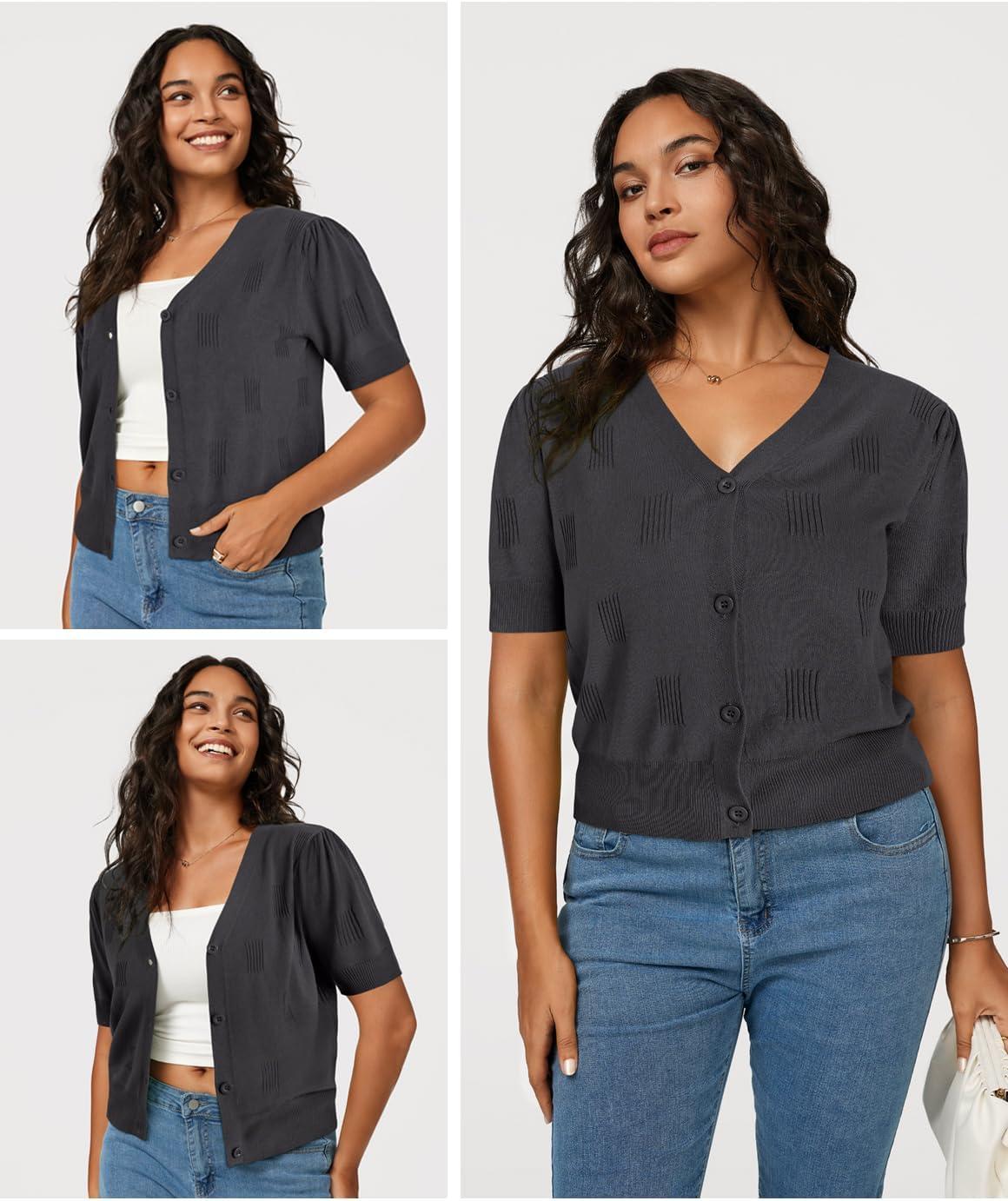 Arach&Cloz Women’s Lightweight Summer Business Casual Cropped Short Sleeve Cardigan(Dark Gray)