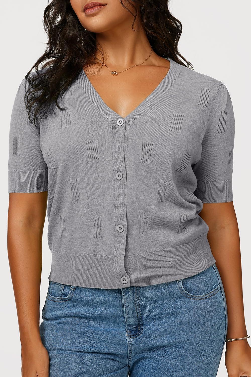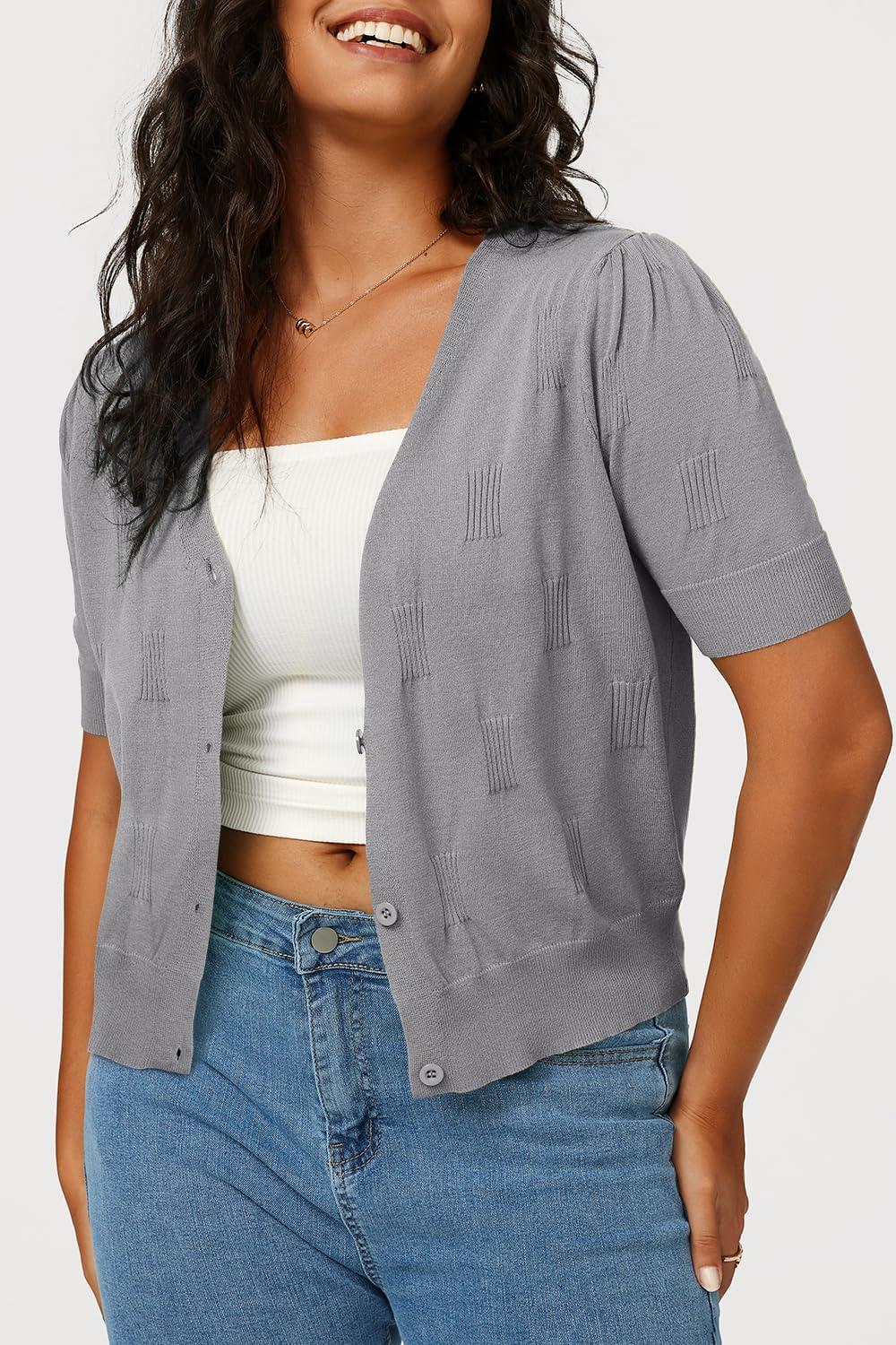 Arach&Cloz Women’s Lightweight Summer Business Casual Cropped Short Sleeve Cardigan(Grey)