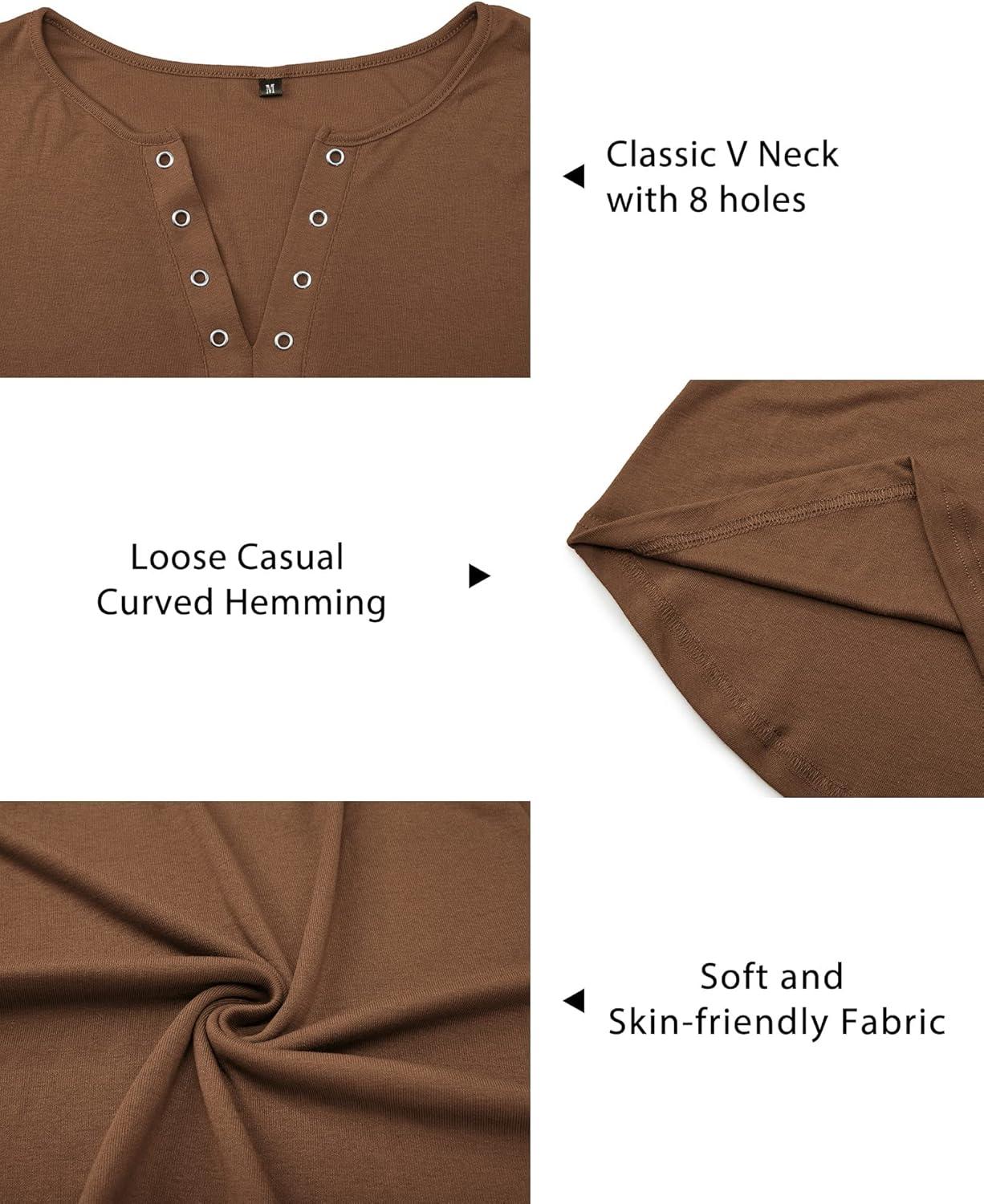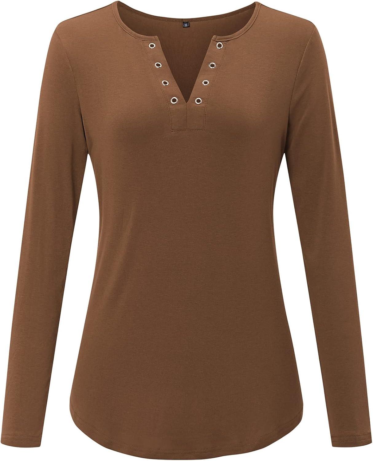 Arach&Cloz Womens Long Sleeve Lace Fall Tops Solid V Neck Button Henley Shirt Casual Tunic Blouse(Dark Coffee02)