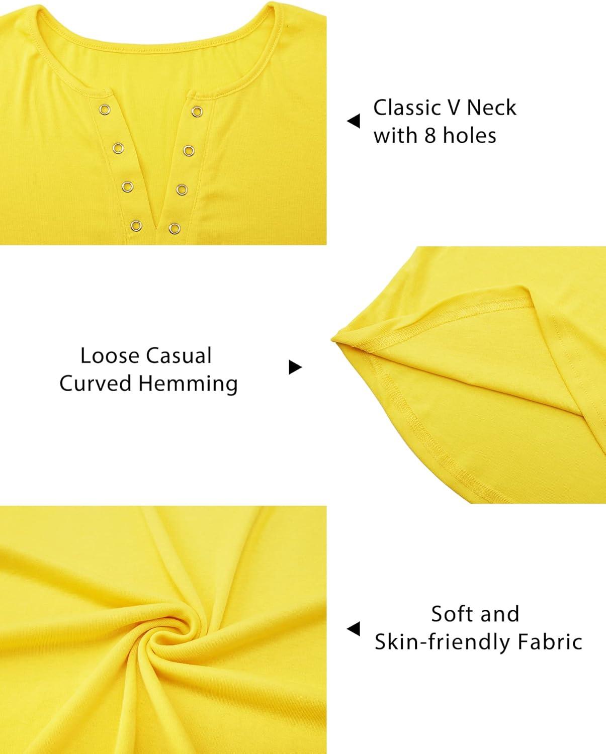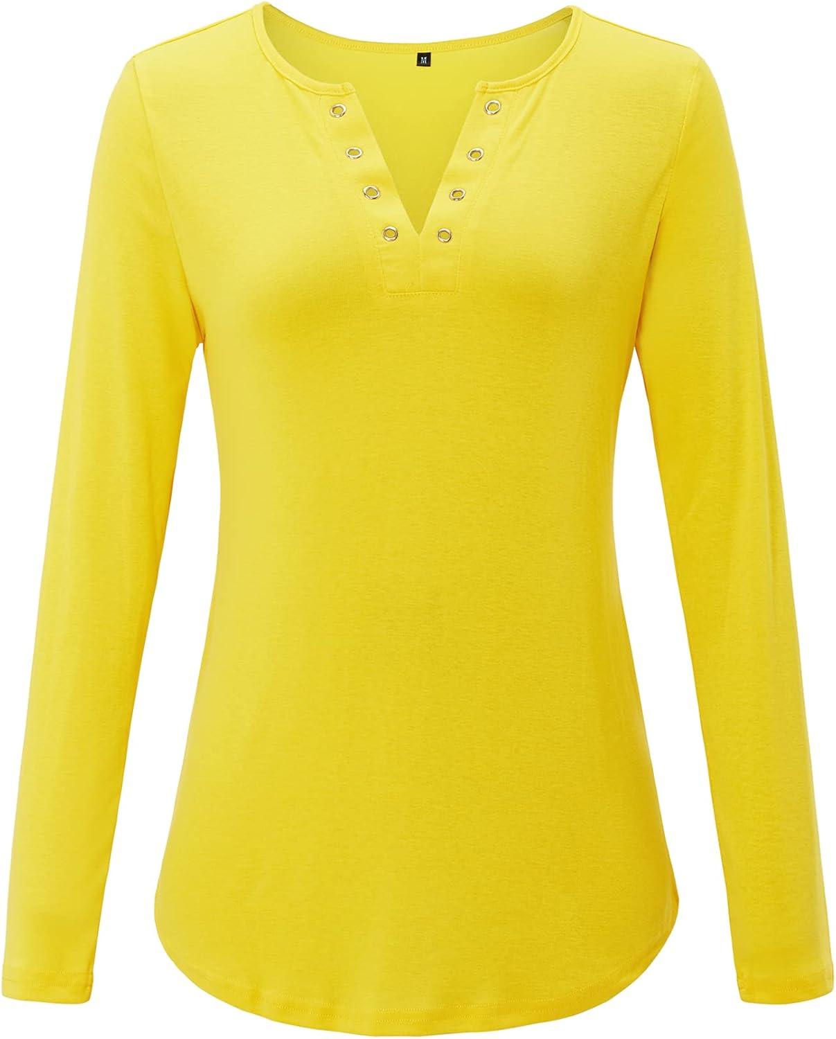Arach&Cloz Womens Long Sleeve Lace Fall Tops Solid V Neck Button Henley Shirt Casual Tunic Blouse(Yellow01)