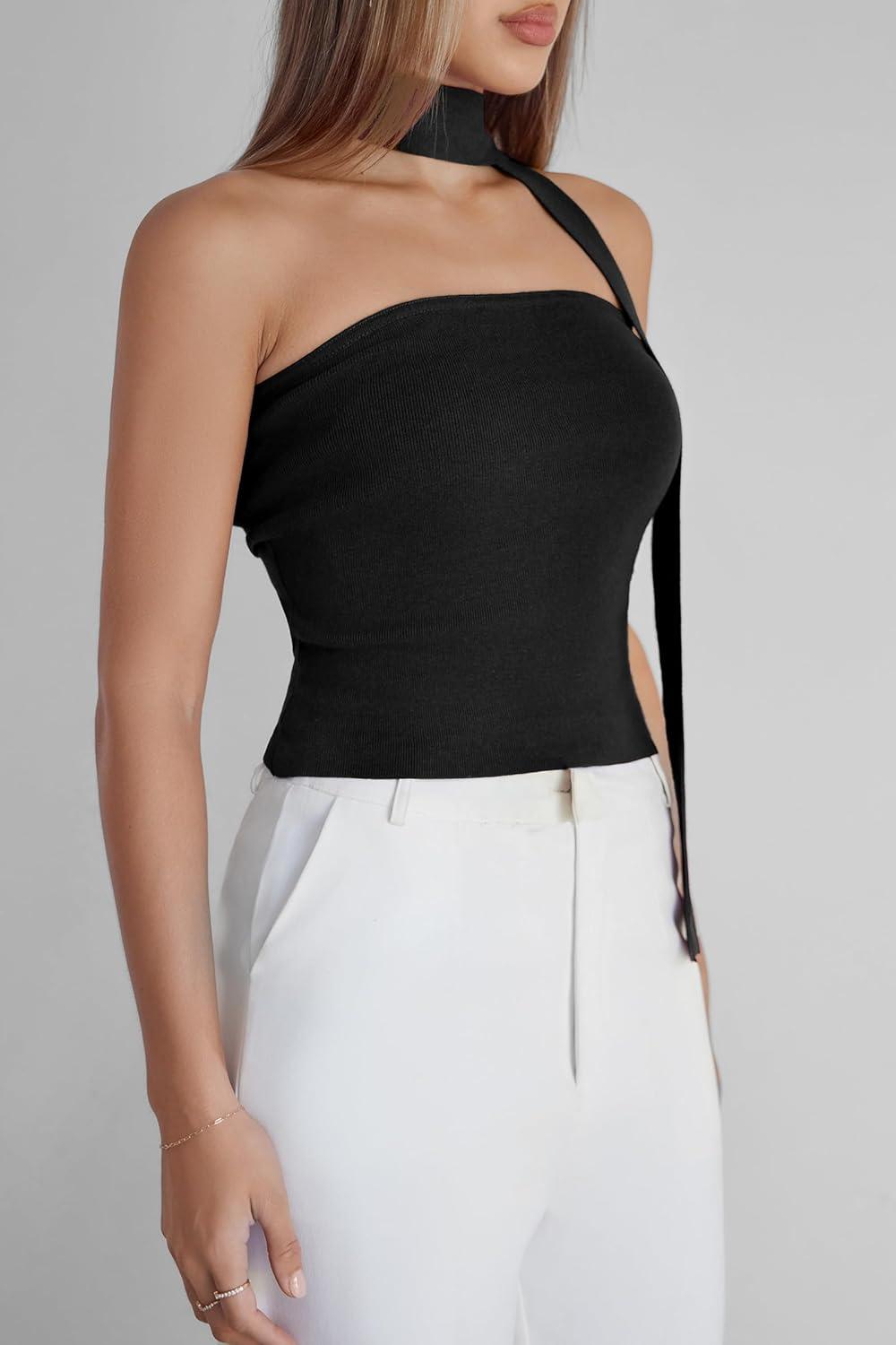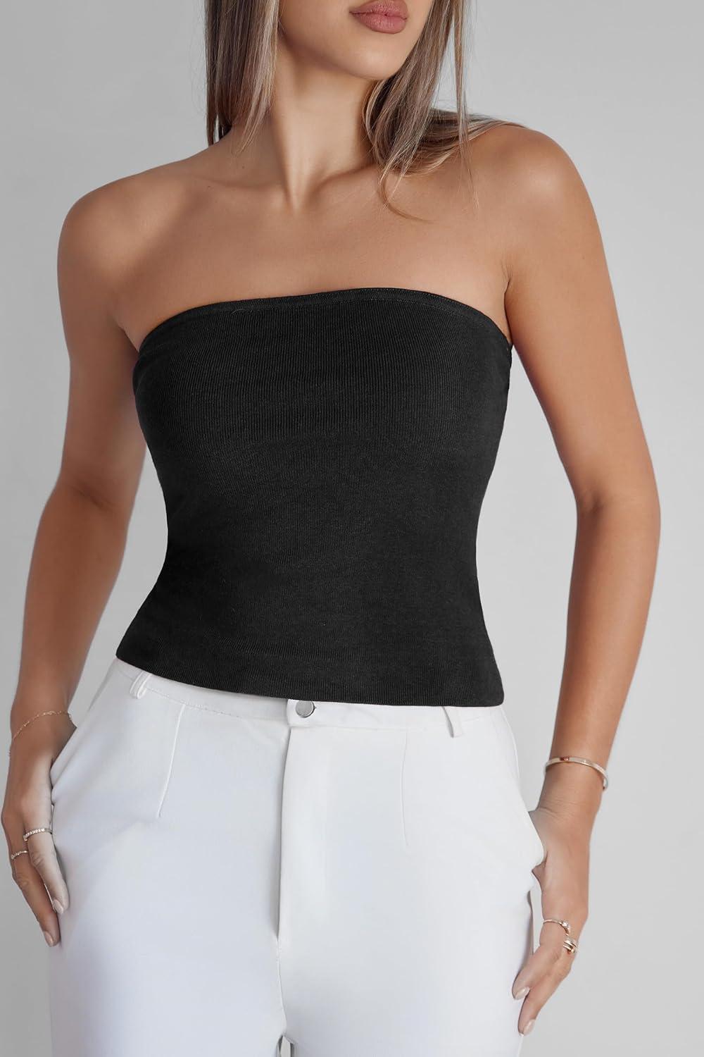 Arach&Cloz Women’s Non See Through 2-in-1 Y2K Non Slip Fall Scarf Tube Top 2025(Black)