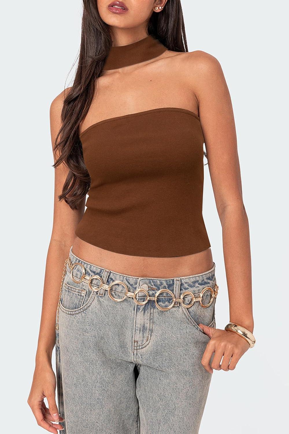 Arach&Cloz Women’s Non See Through 2-in-1 Y2K Non Slip Fall Scarf Tube Top 2025(Caramel)