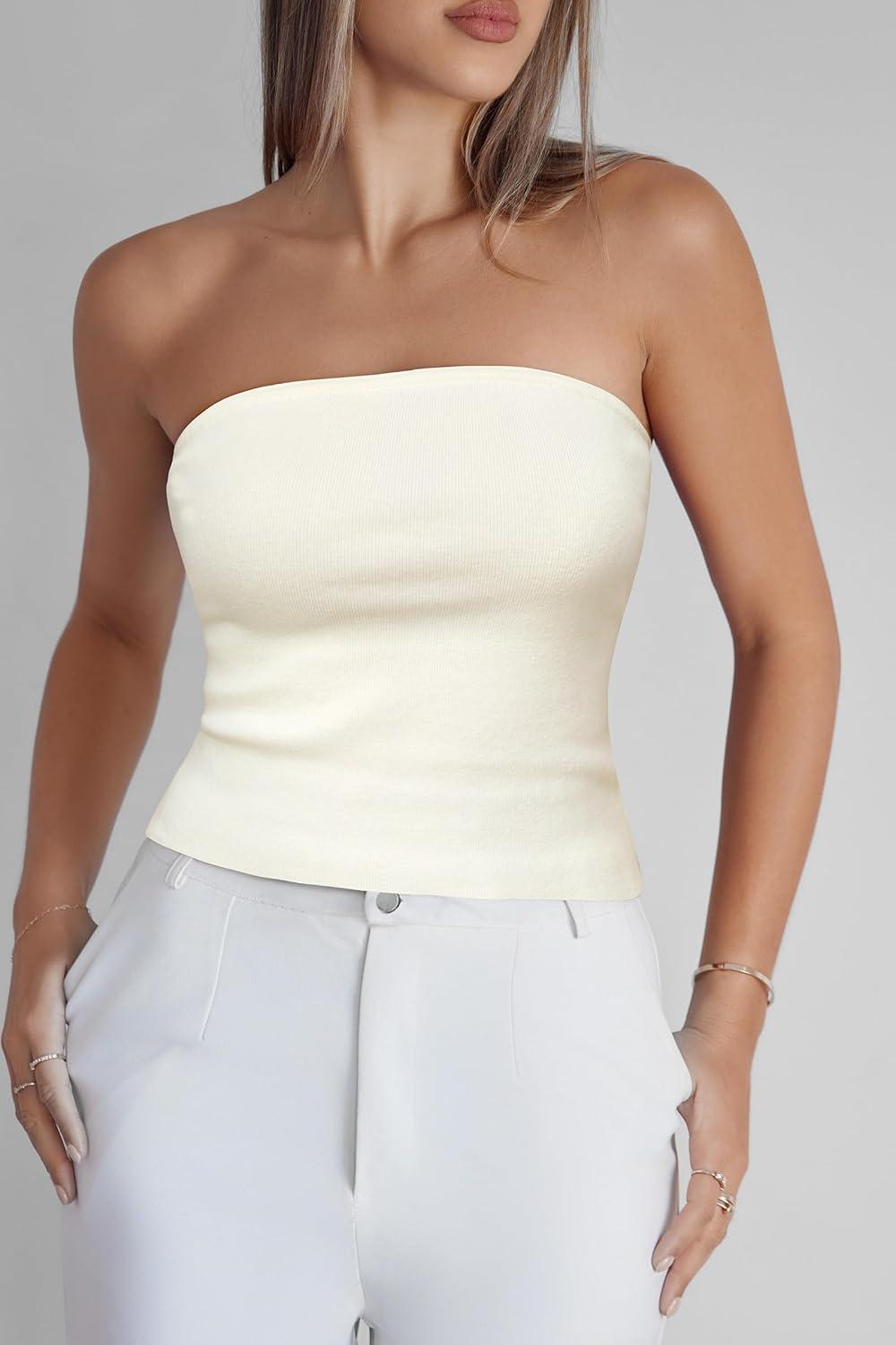 Arach&Cloz Women’s Non See Through 2-in-1 Y2K Non Slip Fall Scarf Tube Top 2025(Ivory White)