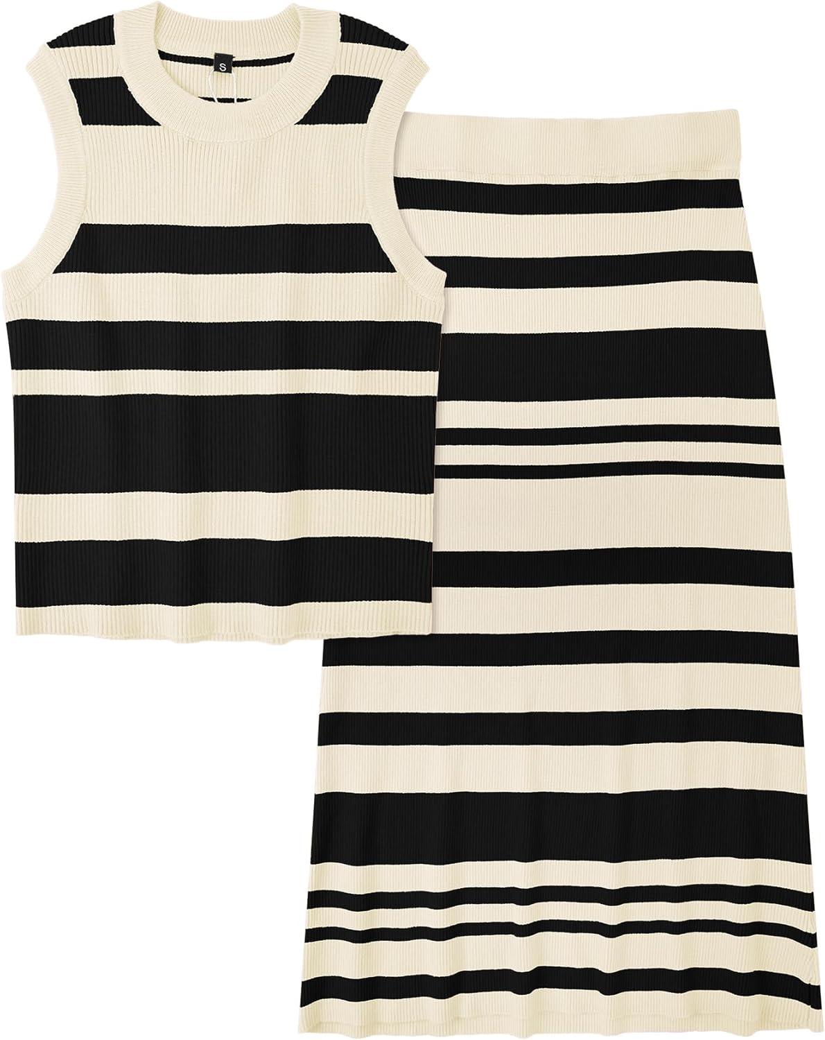 Arach&Cloz Women’s Non See Through 2 Piece Sets Early Fall Tank Top and Midi Skirt Knit Outfits(Apricot-black)