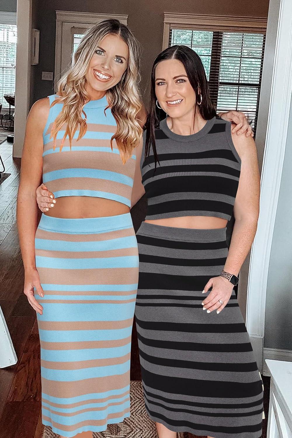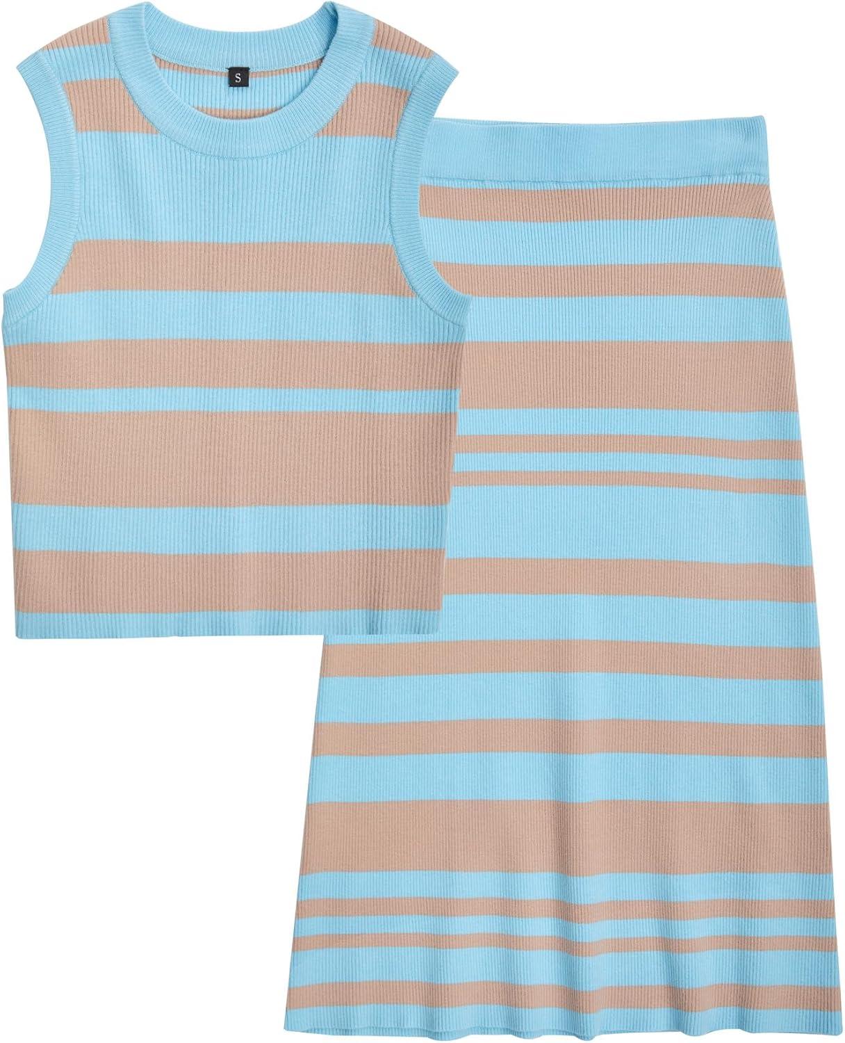 Arach&Cloz Women’s Non See Through 2 Piece Sets Early Fall Tank Top and Midi Skirt Knit Outfits(Light Blue-brown)