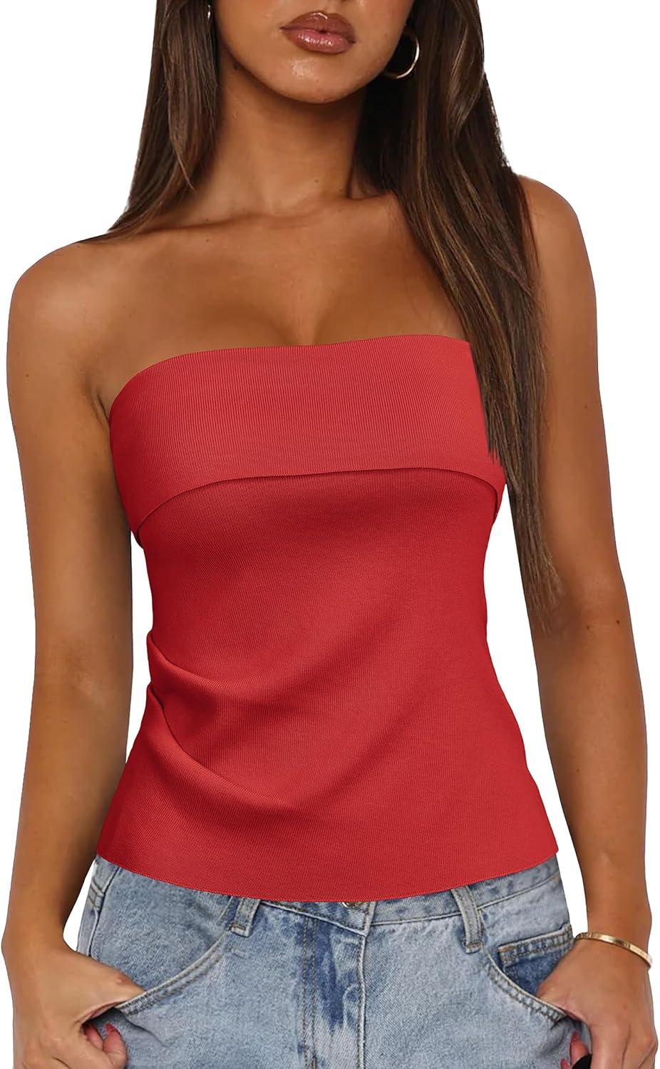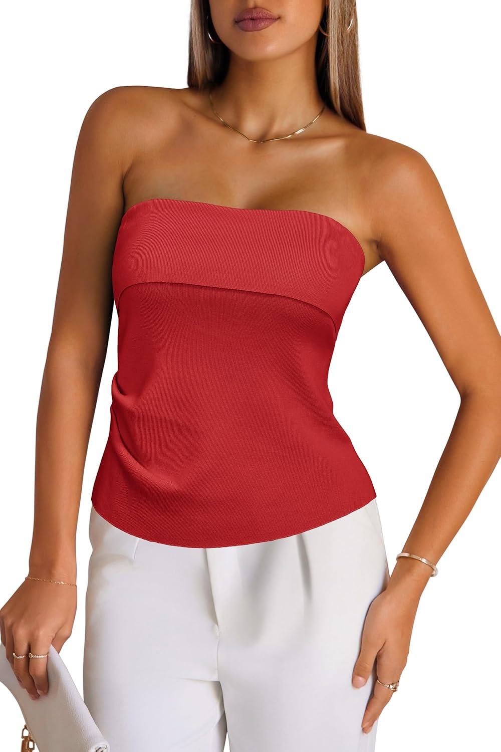 Arach&Cloz Women’s Silk Blend Non See Through Non Slip Fall Fashion Tube Top 2025(Red)