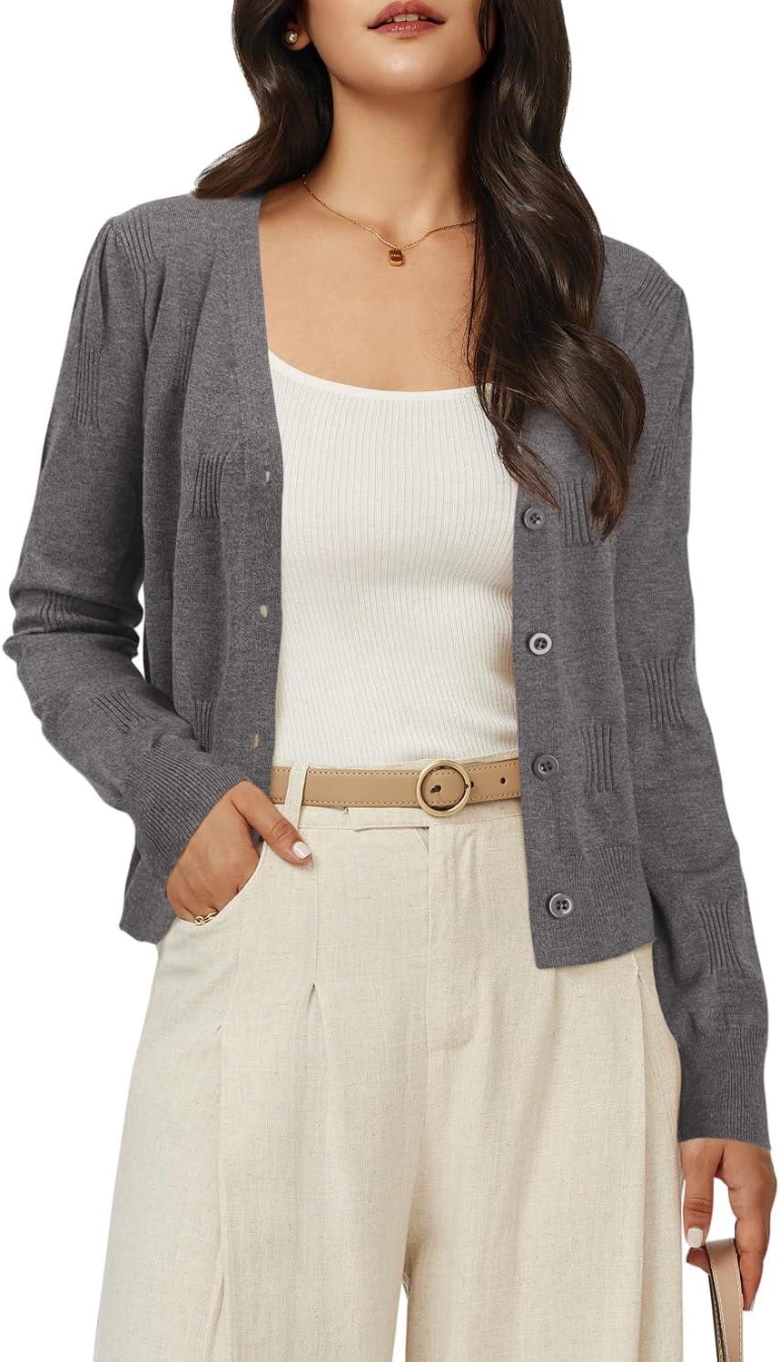 Arach&Cloz Women’s Soft Cropped Cardigan Casual Lightweight Shrug Sweater Tops(Dark Gray)