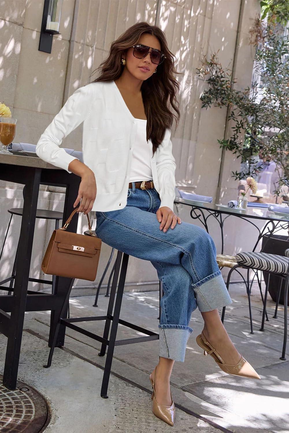 Arach&Cloz Women’s Soft Cropped Cardigan Casual Lightweight Shrug Sweater Tops(White)
