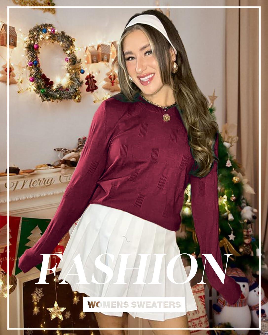 Arach&Cloz Women’s Soft Knit Sweater Fall Dressy Casual Pullover Tops(A-dark Red)