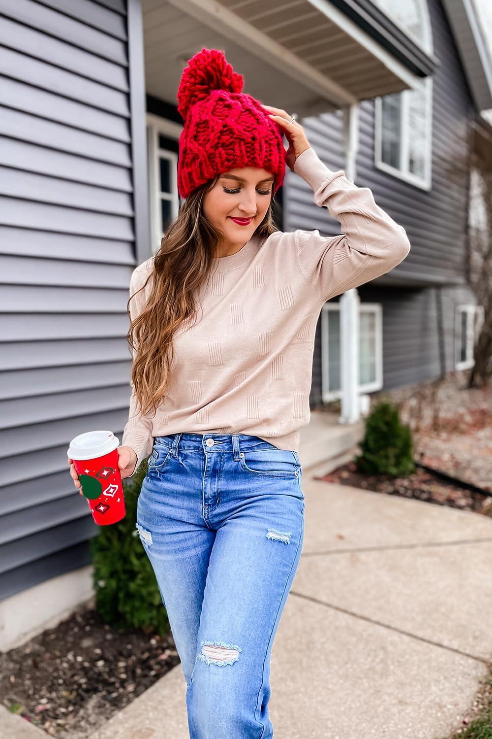 Arach&Cloz Women’s Soft Knit Sweater Fall Dressy Casual Pullover Tops(A-deep Apricot)