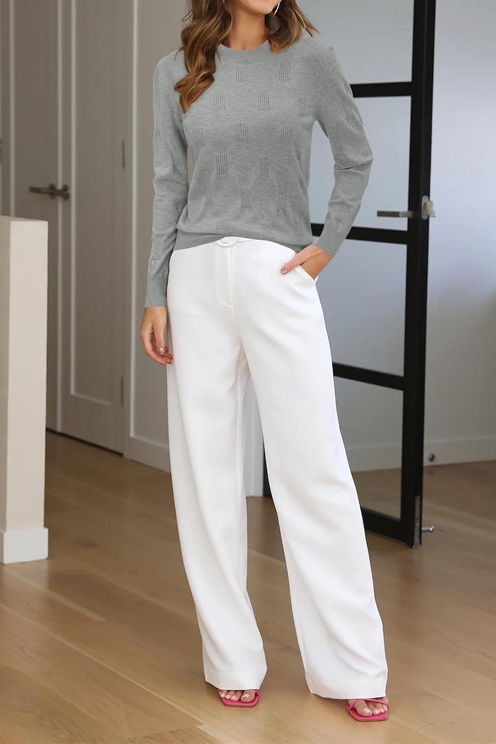 Arach&Cloz Women’s Soft Knit Sweater Fall Dressy Casual Pullover Tops(A-light Grey)
