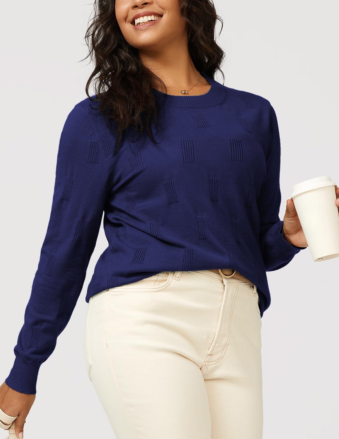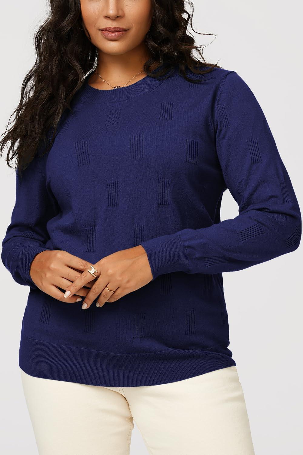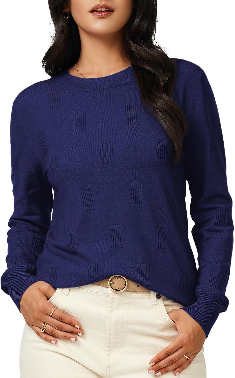 Arach&Cloz Women’s Soft Knit Sweater Fall Dressy Casual Pullover Tops(A-navy)