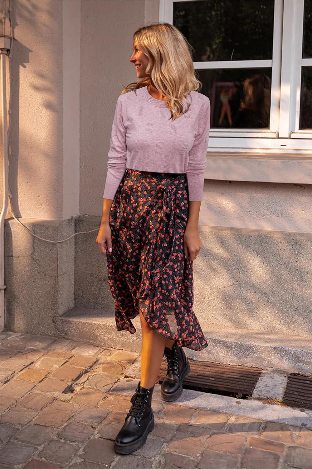 Arach&Cloz Women’s Soft Knit Sweater Fall Dressy Casual Pullover Tops(A-pink02)