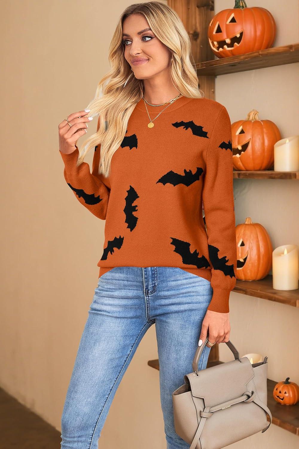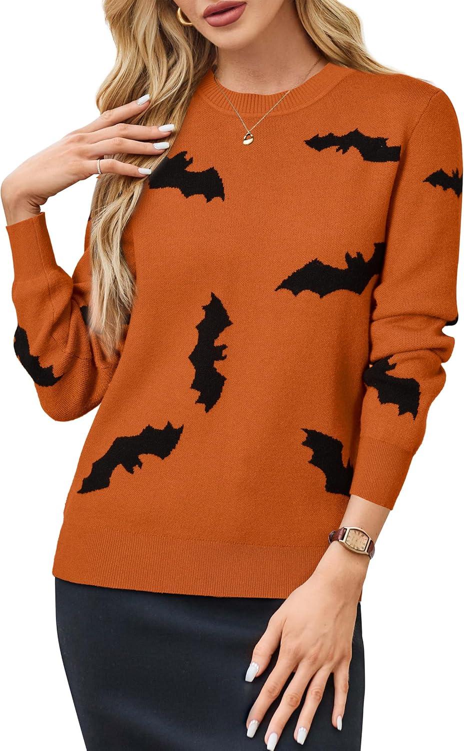 Arach&Cloz Women’s Soft Knit Sweater Fall Dressy Casual Pullover Tops(Halloween02)