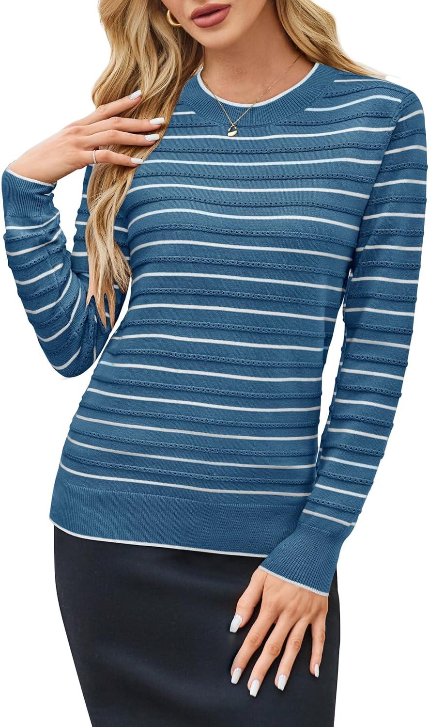 Arach&Cloz Women’s Soft Knit Sweater Fall Dressy Casual Pullover Tops(Striped Blue White)