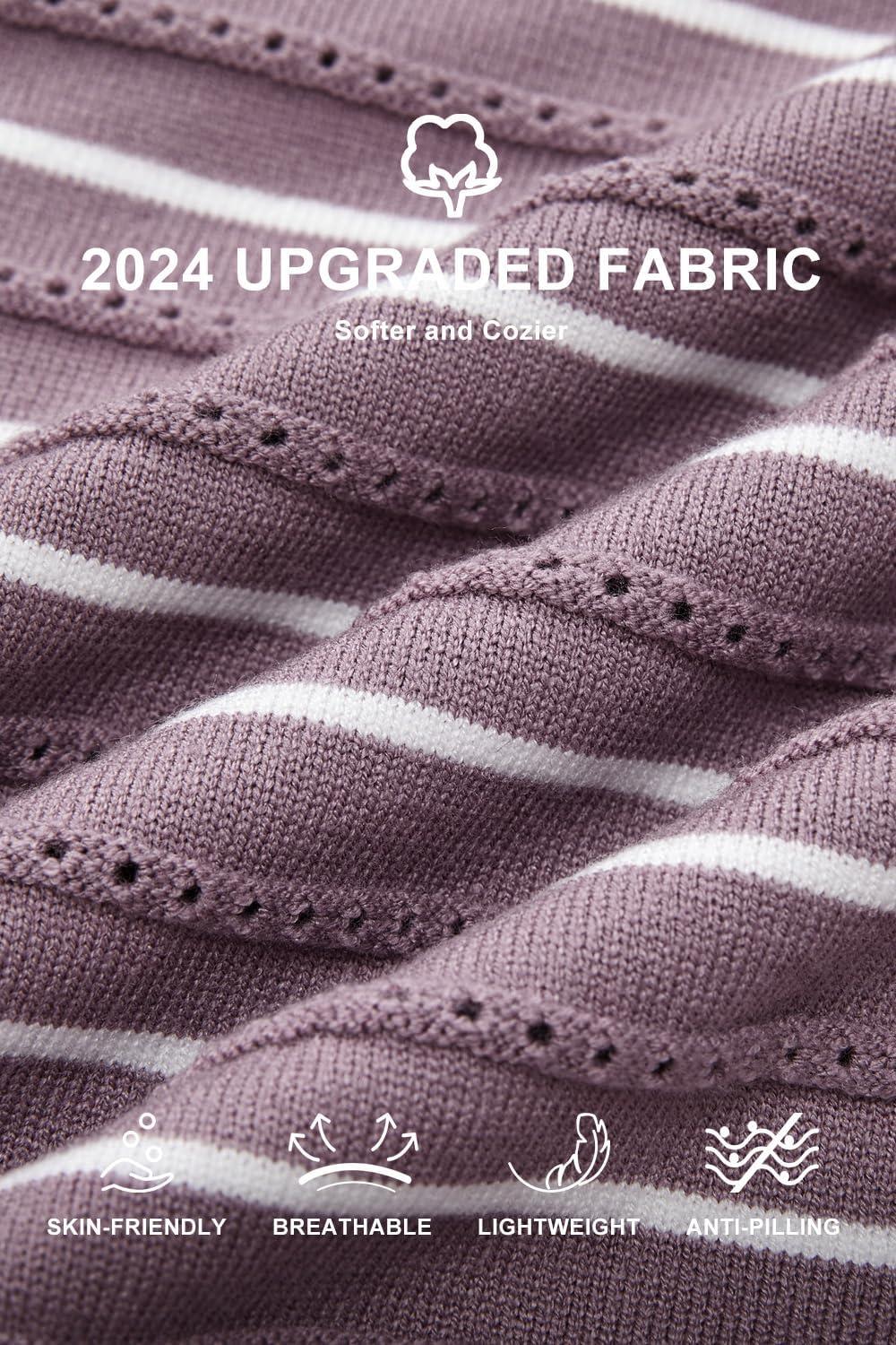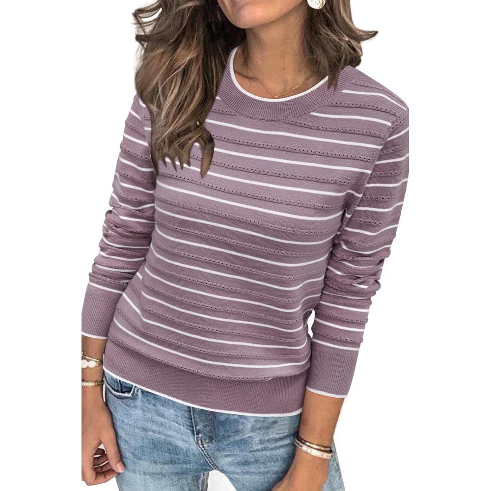 Arach&Cloz Women’s Soft Knit Sweater Fall Dressy Casual Pullover Tops(Striped Purple White)