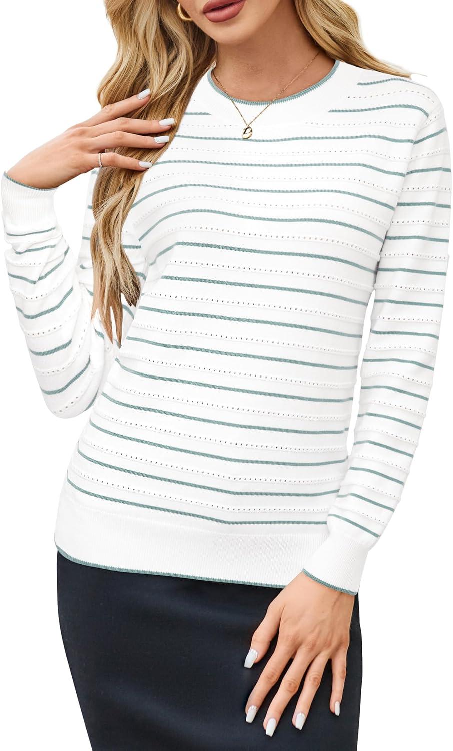 Arach&Cloz Women’s Soft Knit Sweater Fall Dressy Casual Pullover Tops(Striped White Green)
