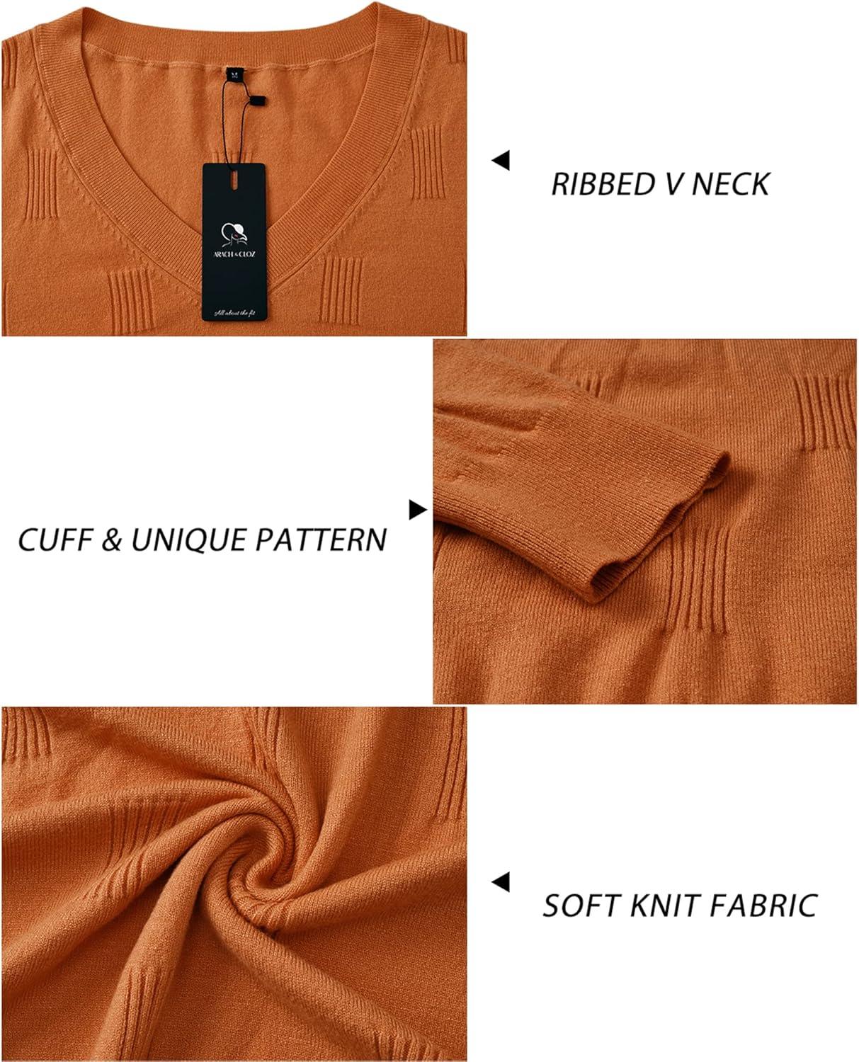 Arach&Cloz Women’s Soft V Neck Long Sleeve Fall Casual Regular Fit Sweater Tops(Red Caramel)
