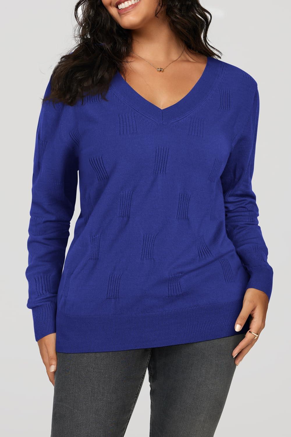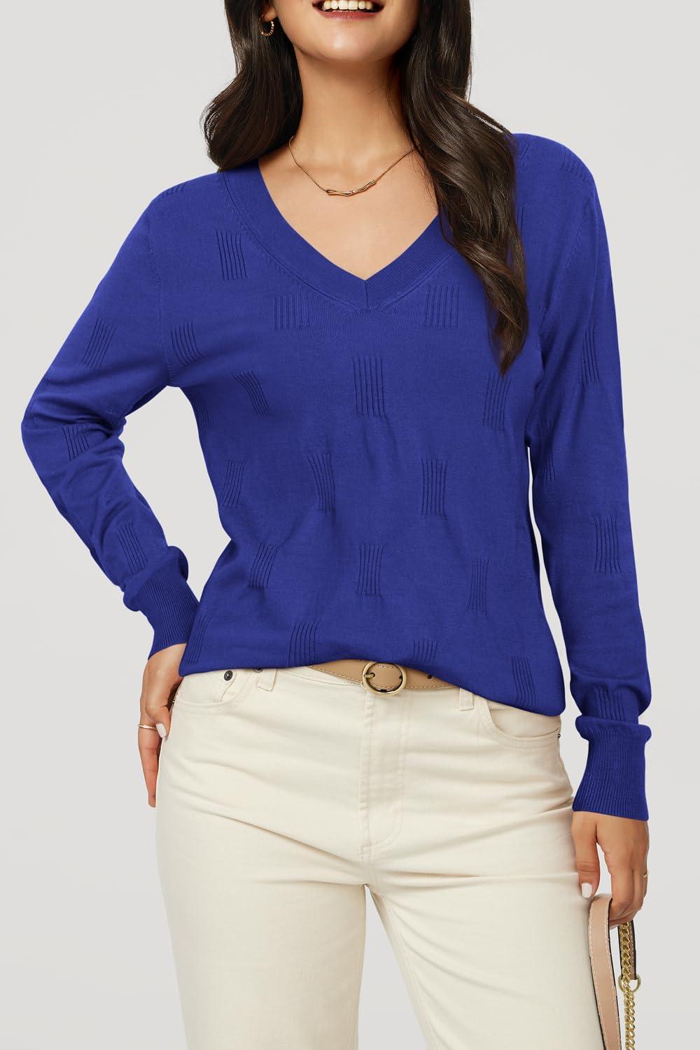 Arach&Cloz Women’s Soft V Neck Long Sleeve Fall Casual Regular Fit Sweater Tops(Royal Blue)