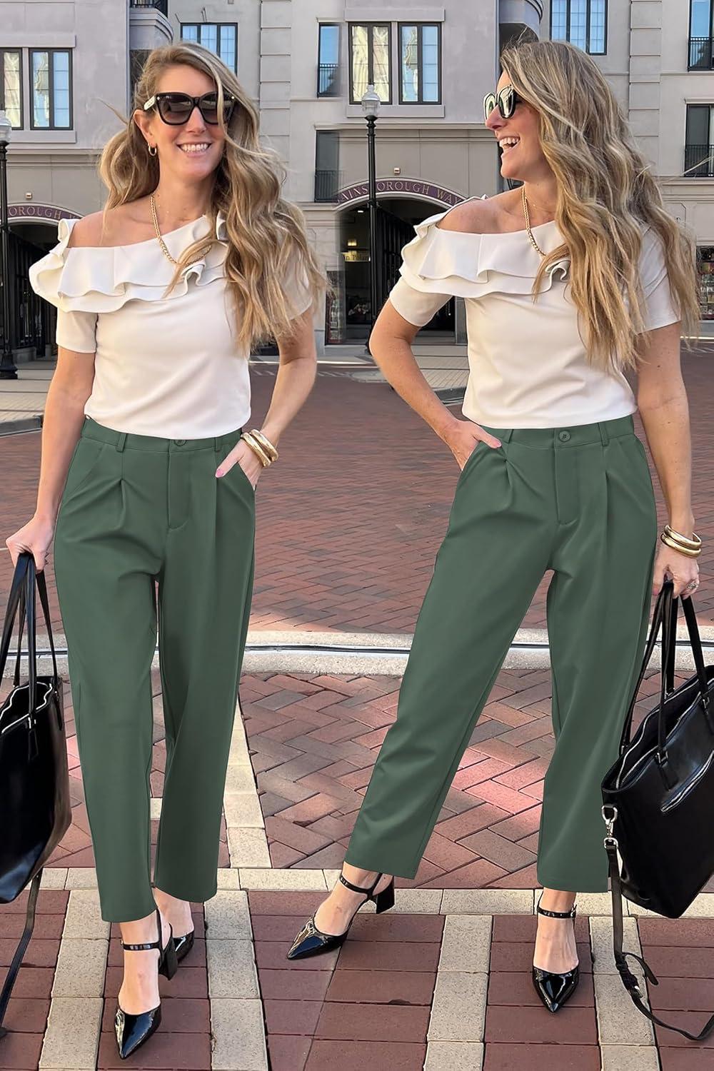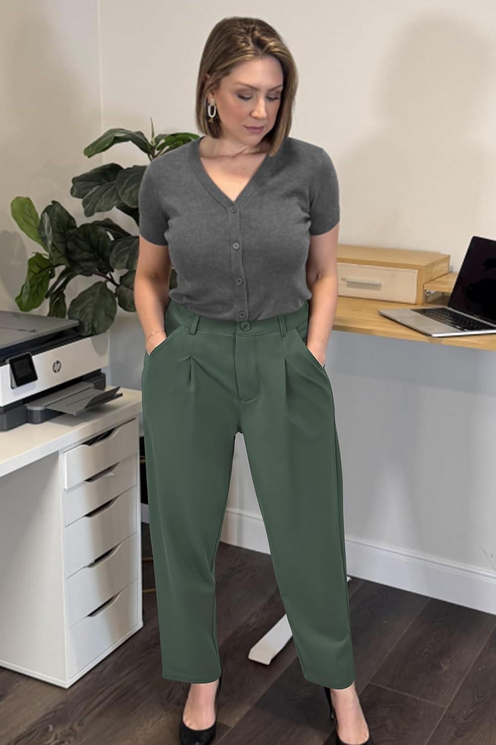 Arach&Cloz Women’s Stretch Wrinkle-Free Comfort Ankle Work Pants Fall 2025(Army Green)