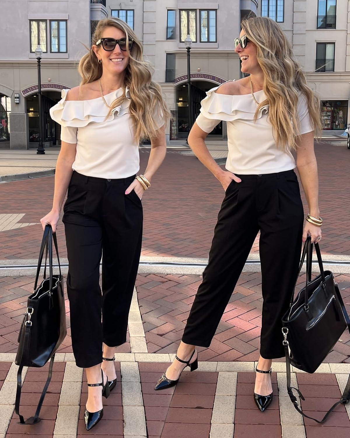 Arach&Cloz Women’s Stretch Wrinkle-Free Comfort Ankle Work Pants Fall 2025(Black)