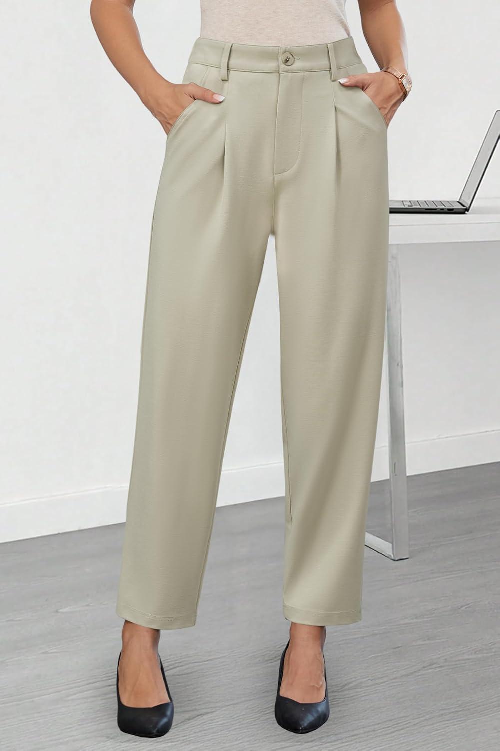 Arach&Cloz Women’s Stretch Wrinkle-Free Comfort Ankle Work Pants Fall 2025(Light Khaki)