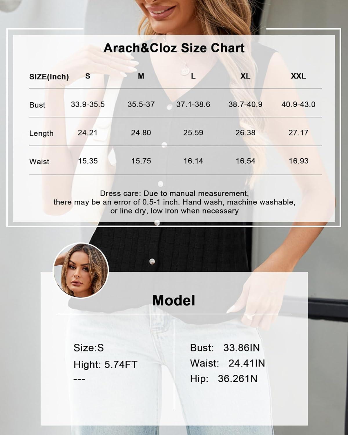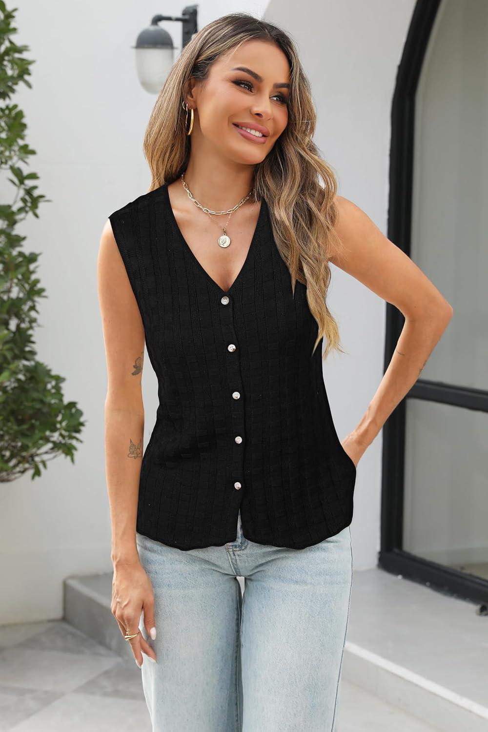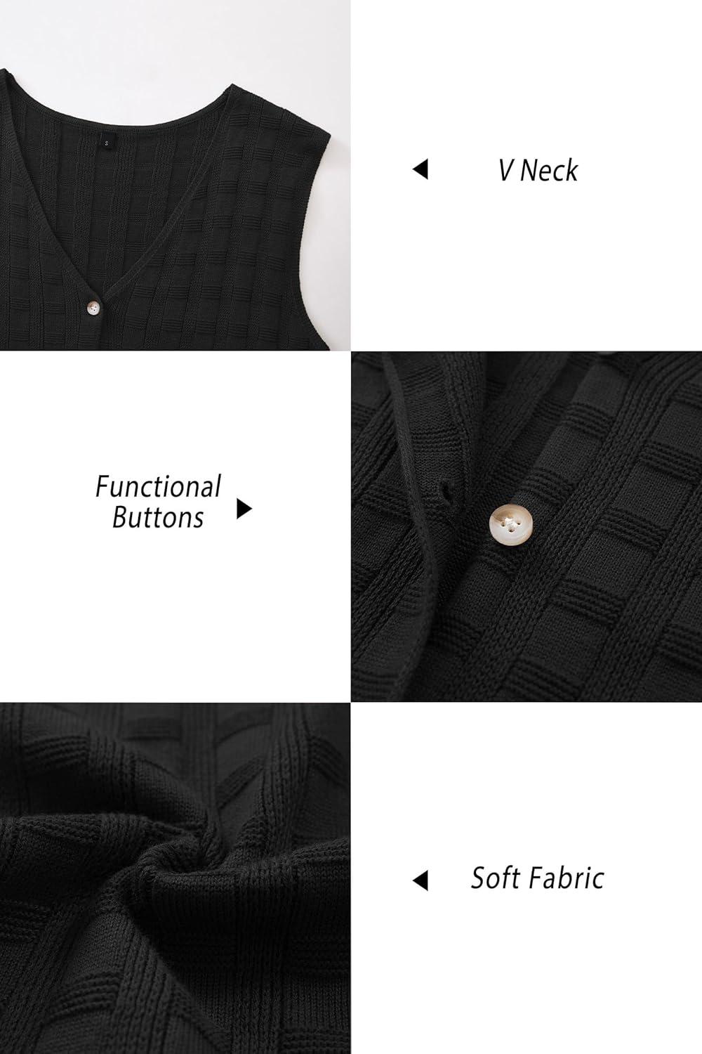 Arach&Cloz Womens Sweater Vest Tops 2025 Summer Knit V Neck Cardigan Sleeveless Button Textured Business Casual Outfits(Black)