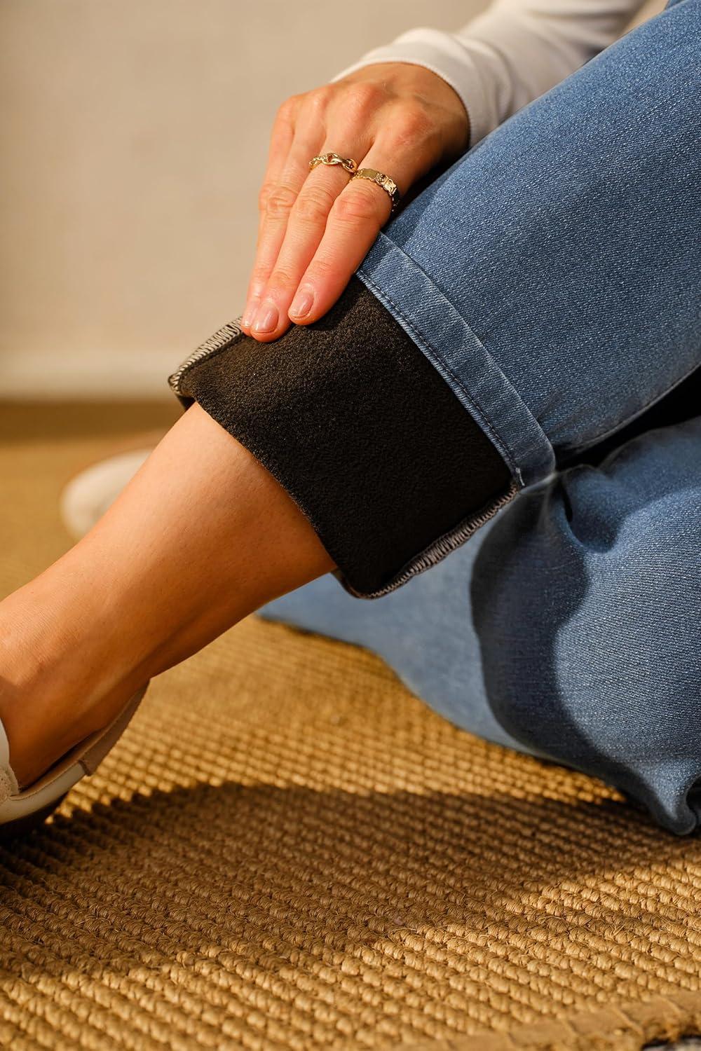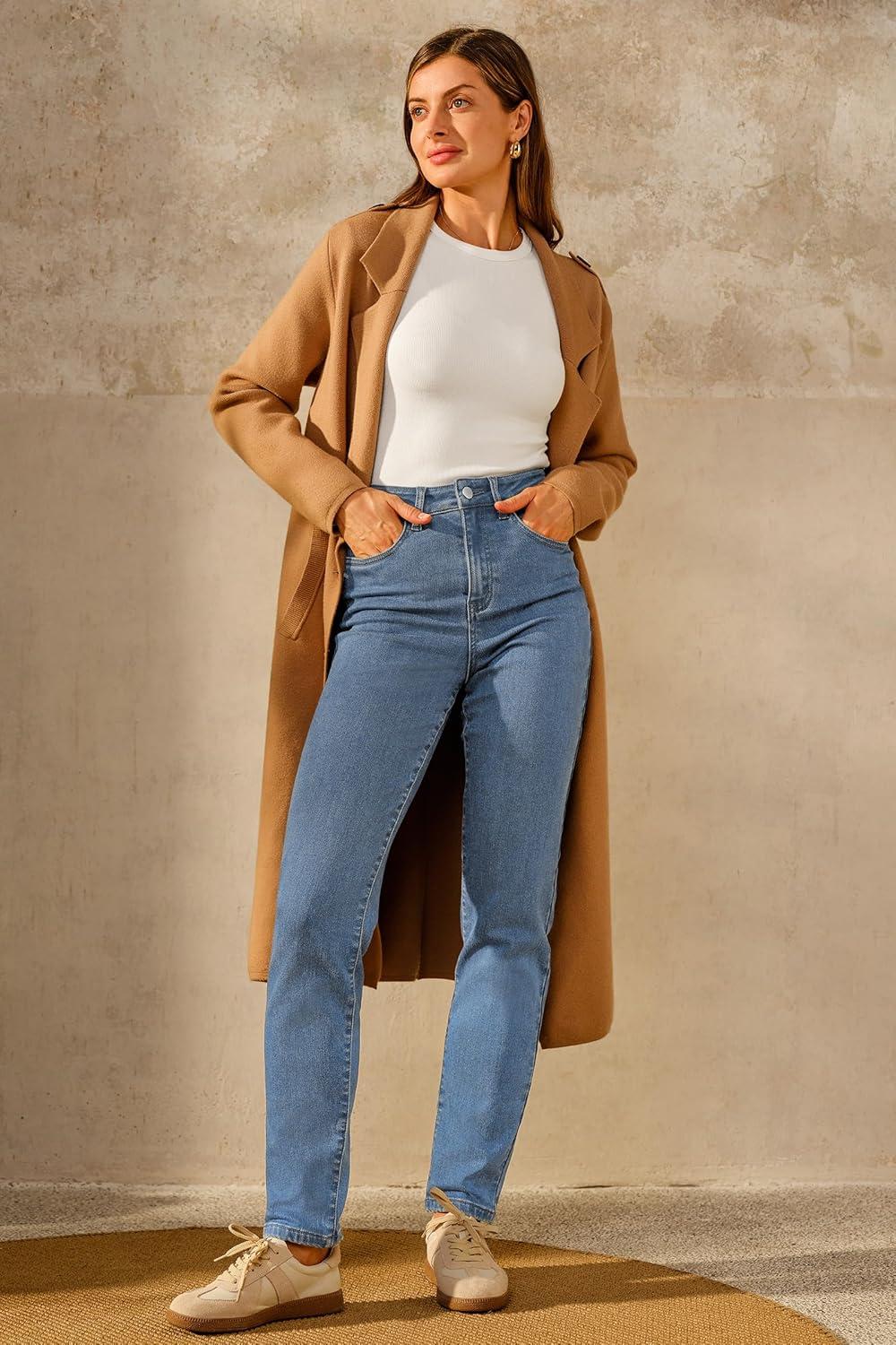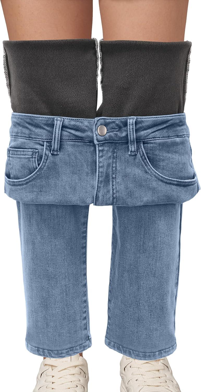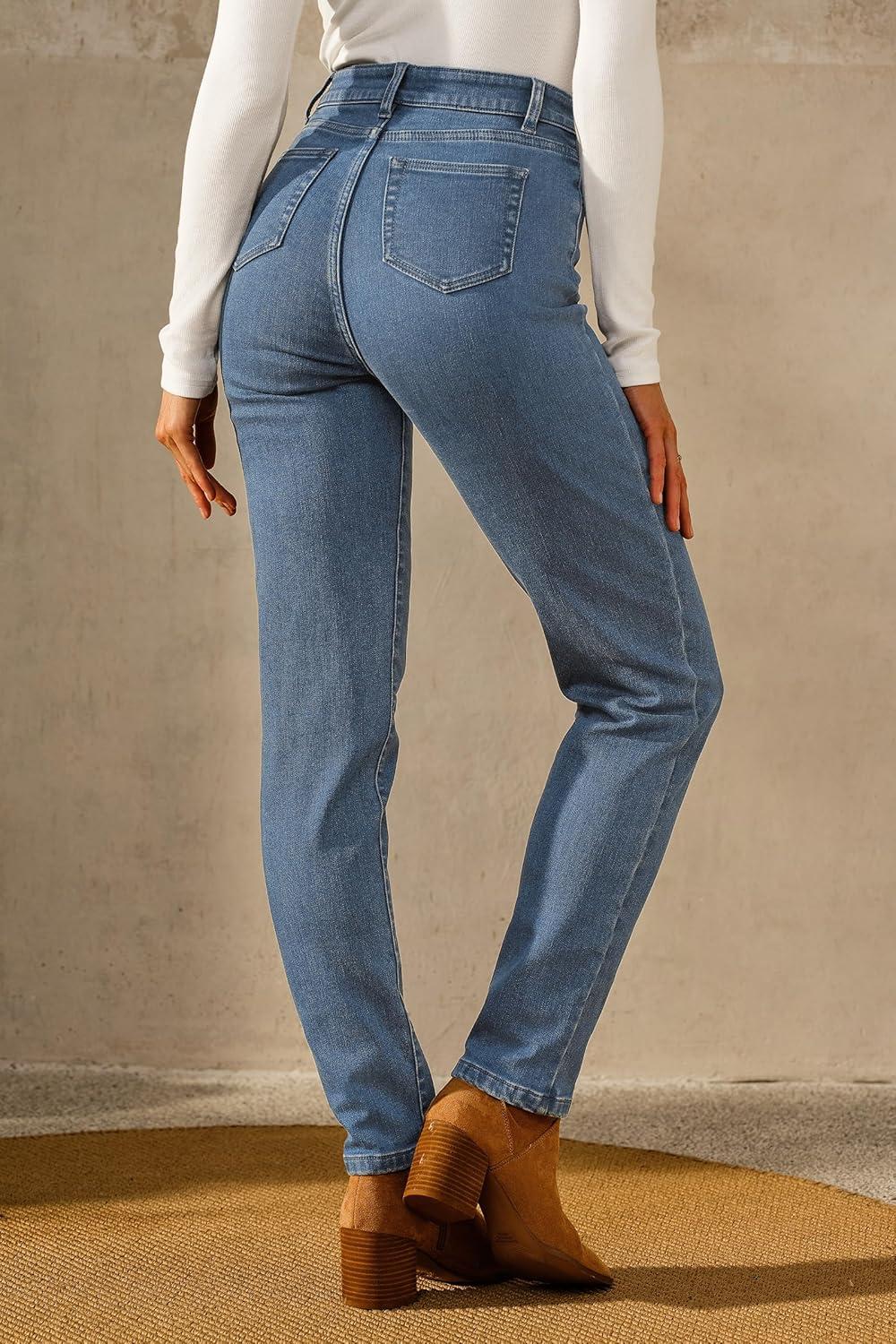 Arach&Cloz Women’s Thin Fleece Lined Jeans High Waisted Stretch Warm Straight Leg Pants 2025(Light Blue)