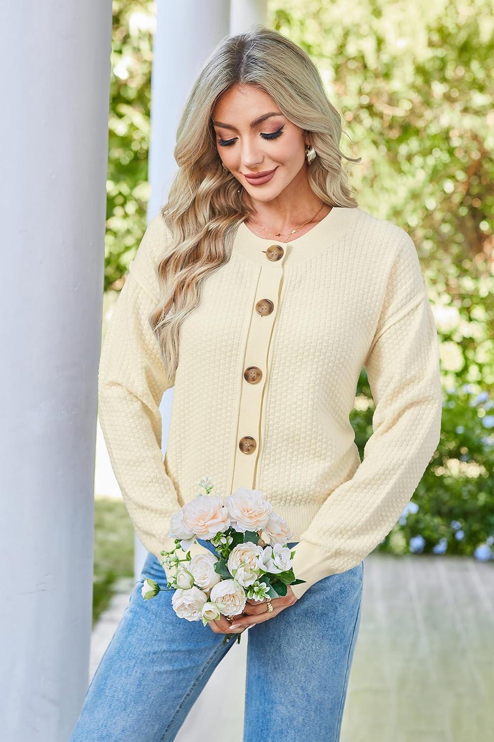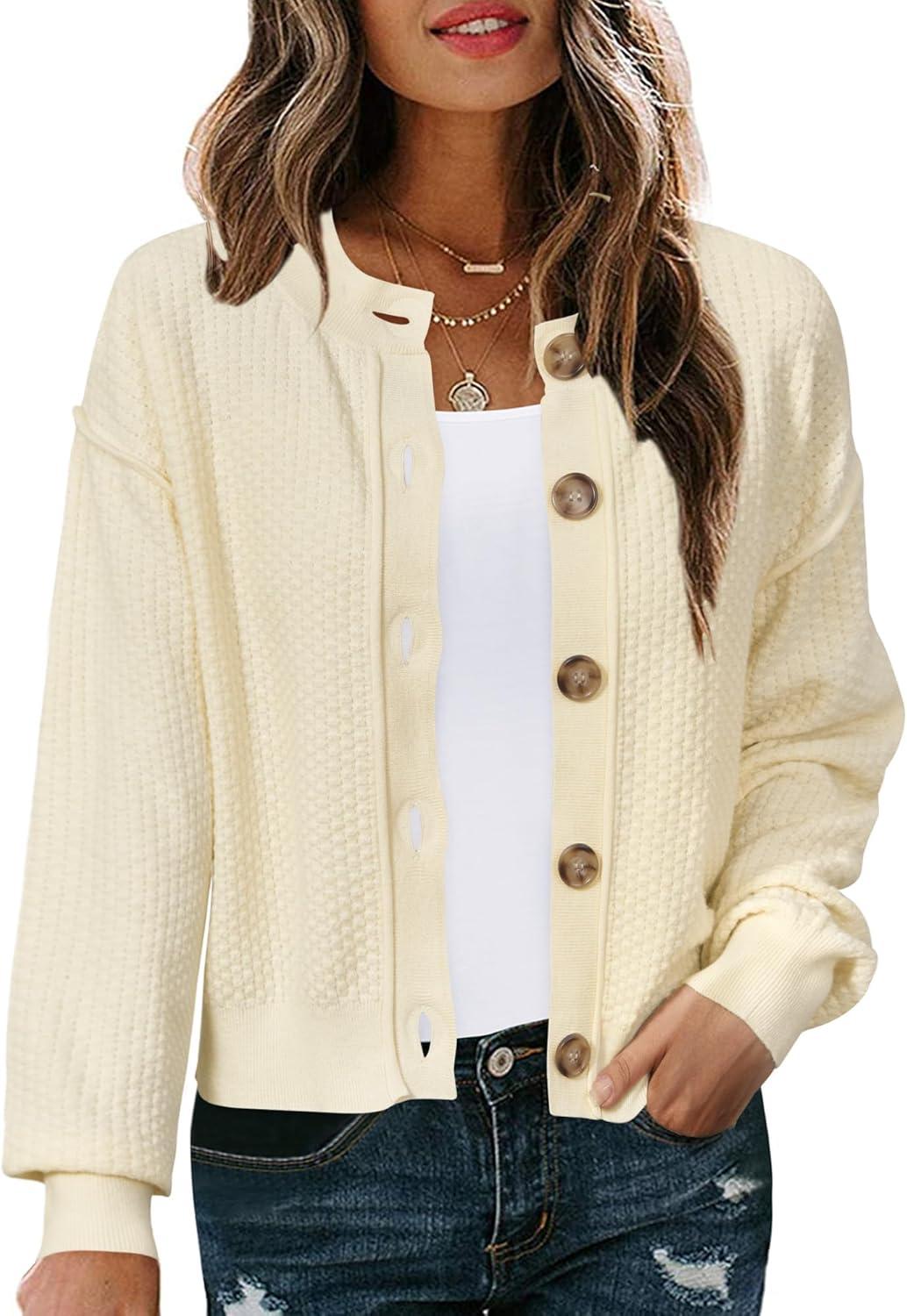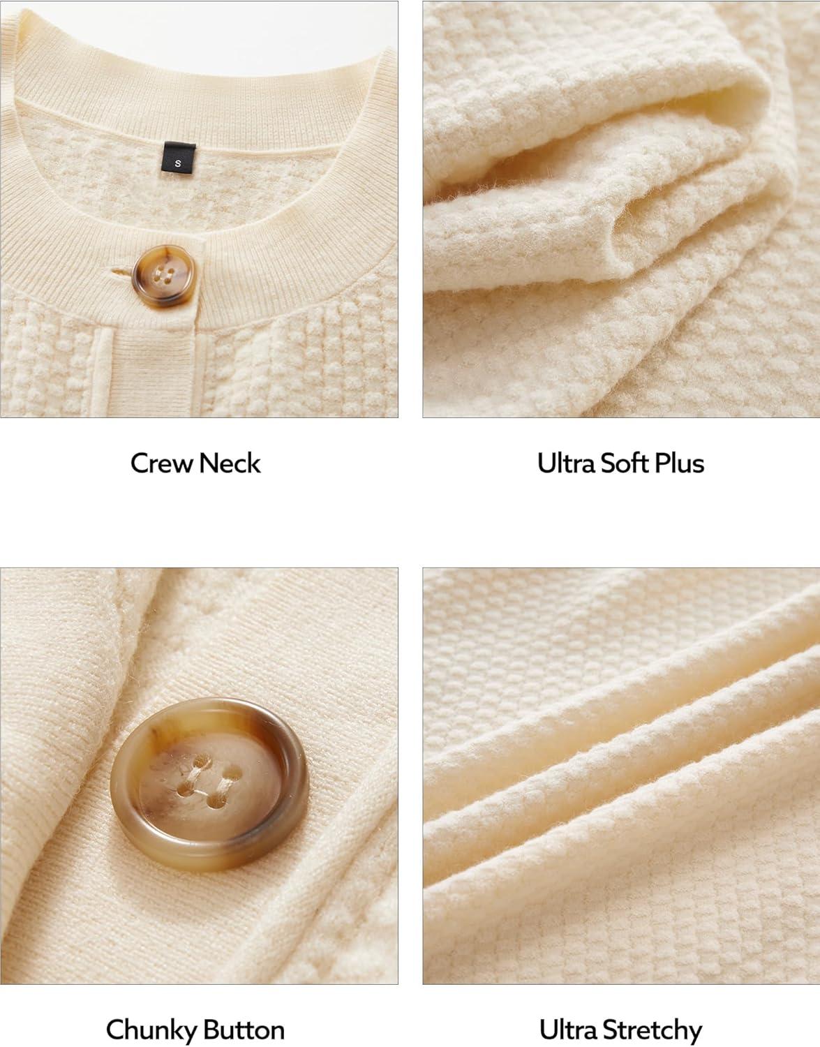 Arach&Cloz Womens Waffle Cropped Cardigan Ultra Stretchy 2025 Spring Soft Chunky Button Business Casual Sweaters(Apricot)
