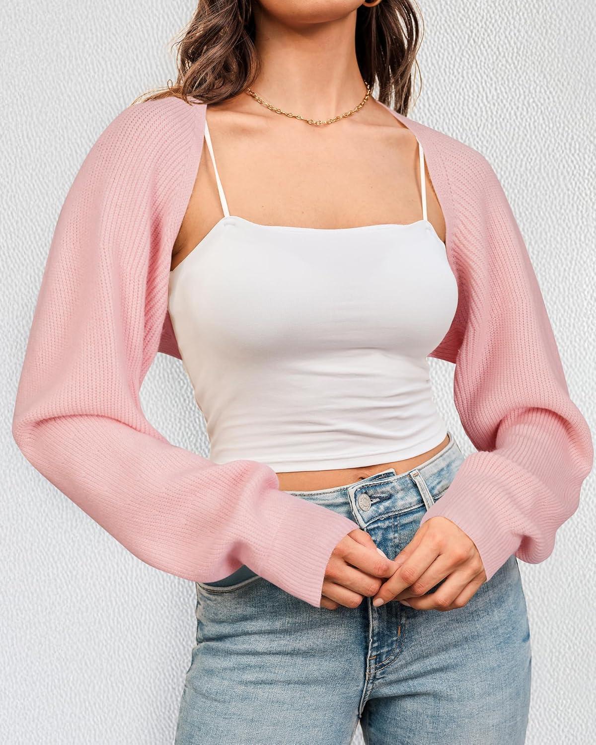 Arach&Cloz Women’s Wool Blend Bolero Shrug Fall Fashion Cropped Cardigans 2025(Pink)